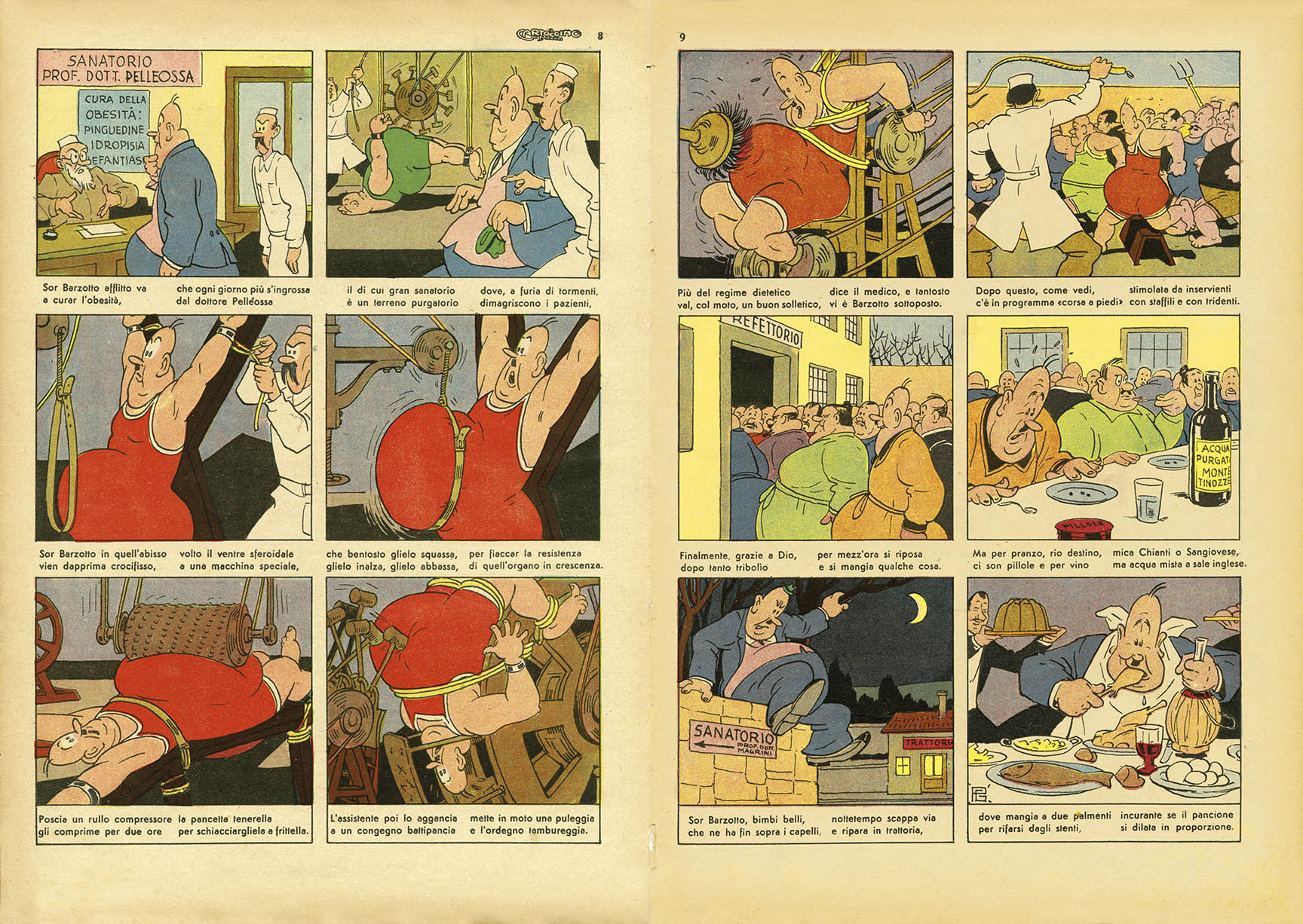 Nelle ultime annate del giornalino si assisté da un lato al fiorire di proposte di lettura adatte a scolari più grandi (come la pubblicazione a puntate di Mowgli, il figlio della giungla di Rudyard Kipling, nella traduzione di Gian Dàuli), dall’altro al proliferare di storie a vignette incentrate su personaggi ricorrenti, molti dei quali concepiti come grottesche caricature del mondo degli adulti. Rientrano in questa tendenza la macchietta borghese, fifona e allarmista creata da Roberto Sgrilli (Sor Erasmo de Spaghetto), e il pingue signorotto incapace di perdere peso di Gustavo Petronio (Sor Pacifico Barzotto).