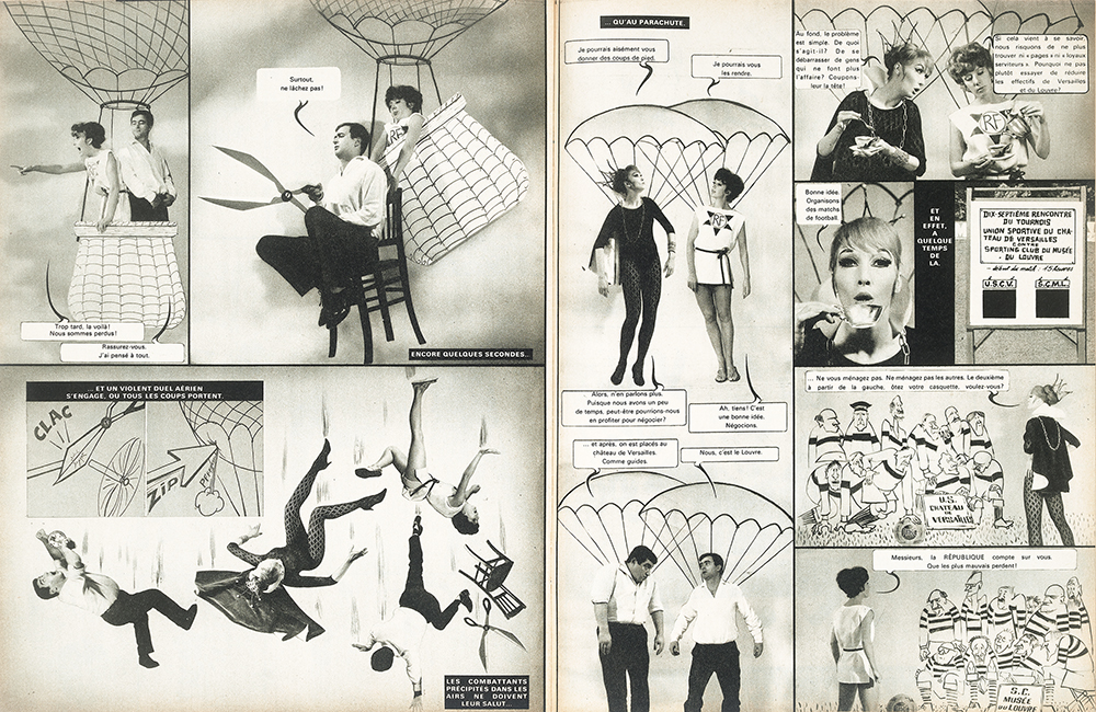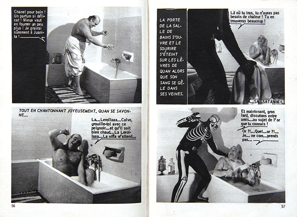 Un’altra curiosità della mostra è il fotoromanzo satirico che trova spazio alla metà degli anni Sessanta su una rivista come Hara-Kiri. I fotoromanzi sono sceneggiati da Georges Wolinski o Gébé (Geoges Blondeaux), mentre gli “attori” sono l’umorista Georges Bernier, noto come Professor Choron e gli stessi membri della redazione. Nel 1969 la milanese EDIP pubblica nove numeri della versione nostrana con testata Kara Kiri. Non mancano esperimenti di fotoromanzi politici su Charlie Hebdo (1979-1980) e di “foto-fumetti” su Fluide Glacial a cura di Bruno Leandri e Marcel Gotlib.