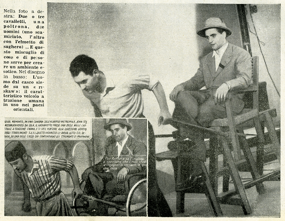 “Interni ed esterni”, vi si legge, “vengono scattati in un unico camerone su fondale bianco. Ricostruire salotti principeschi o mari in burrasca, intricate foreste oppure tramonti radiosi costituirebbe una gran perdita di tempo, ma soprattutto un notevole impiego di capitali. Ad evitare ciò è stato appunto escogitato il sistema del fondale bianco. Successivamente, sulla positiva della foto, un abile disegnatore crea gli sfondi, li anima di particolari, li rende vivi e reali con opportuni giuochi di luce. Il fotografo naturalmente, sotto la guida del regista, deve preoccuparsi di agevolare l’opera del ritoccatore curando, con piccoli trucchi, la prospettiva, il movimento dei personaggi, i diversi piani, la profondità...”