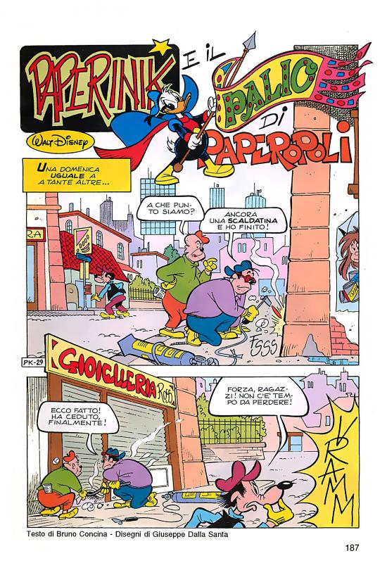 18 settembre 1950. È in quel giorno che, a Venezia, nasce Giuseppe Dalla Santa. Appassionato di fumetti fin dall’infanzia, il futuro disegnatore ha una carriera scolastica che sembra condurlo verso una professione ben diversa da quella che avrebbe poi svolto. Dopo il liceo scientifico, infatti, frequenta la facoltà di Giurisprudenza. Ma proprio quando la sorte sembra indirizzarlo verso la carriera avvocatizia, nasce in lui il desiderio di dedicarsi al fumetto e s’iscrive all’Accademia di Belle Arti. Nel 1975, dopo il diploma, Dalla Santa entra nello studio dei fratelli Ennio e Vladimiro Missaglia dai quali apprende i rudimenti del mestiere. Tra i suoi primi lavori ci sono alcuni episodi della serie d’ambientazione esotica "Kalì", pubblicata in Francia da Jeunesse & Vacances. Negli anni successivi collabora con numerosi editori italiani, tra i quali Dardo (SUPEREROICA), Cenisio (FURIA CAVALLO DEL WEST), Universo (INTREPIDO) ed Eura (LANCIOSTORY e SKORPIO), e la francese Éditions Aventures et Voyages ("Yukon"). Per quasi quindici anni, Dalla Santa affronta molti generi del fumetto realistico finché, nel 1989, Giovan Battista Carpi lo invita a disegnare per TOPOLINO. La sua prima storia è "Zio Paperone e la scatola del tempo", sceneggiata da Fabio Michelini e pubblicata nell’ottobre di quell’anno.In un’intervista rilasciata ad Alessandro Sisti, il disegnatore veneziano diceva: “Negli ultimi tempi in cui mi occupavo di realistico notavo che il mio tratto stava acquisendo una sfumatura grottesca. Quando ho cominciato ad approfondire il comico ho scoperto che era nelle mie corde e, alla fine del periodo di studio, in cui devo ammettere di essermi divertito moltissimo, ho realizzato di essere più portato per quello”.