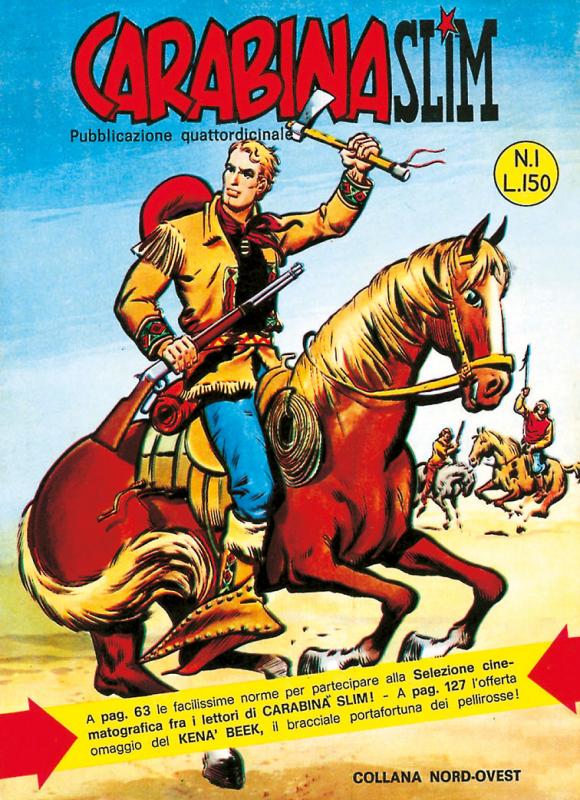 Con RED BUCK si conclude anche la breve collaborazione con Sergio Bonelli, che lo mette in contatto con le francesi Éditions Aventures et Voyages. Qui gli sono affidati i testi di CARABINA SLIM, serie di genere western creata da Onofrio Bramante e pubblicata in seguito anche in Italia dalle Edizioni Viaggi e Avventure di Milano. È ancora Melloncelli a ricordare la collaborazione con la casa editrice di Bernadette Ratier: