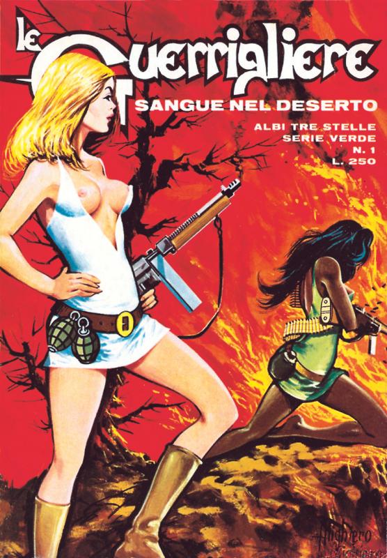 Altro importante lavoro è con l’editore Battista Arcaini, che con il marchio Cenisio pubblica alcuni importanti periodici a fumetti per ragazzi. Melloncelli sceneggia numerosi episodi di TARZAN e di RIN TIN TIN e scrive i testi delle serie TUNGA, LO SCERIFFO INDIANO e PANTERA NERA, illustrate entrambe dall’affermato Guido Zamperoni e apparse in appendice proprio a TARZAN. La fine del decennio e i primi anni Settanta vedono lo sceneggiatore milanese scrivere i dialoghi di alcuni fotoromanzi erotici per il mensile TAB, pubblicato ancora da Balzarini, e creare le serie per adulti GIALLOHORROR, disegnata da Eros Kara, e LE GUERRIGLIERE, affidata alle matite di Tenenti. Pubblicati dall’Editoriale Insubria, i due pocket non incontrano i favori del pubblico e si interrompono rispettivamente al quarto e al terzo numero, nel maggio 1972. Ecco come riaffiora quel periodo nei ricordi di Melloncelli: