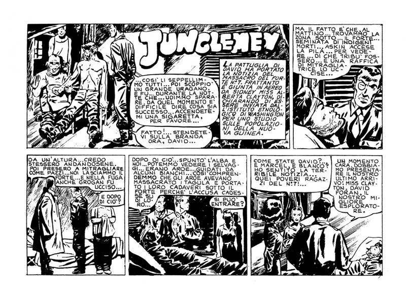 Sulle pagine del CORRIERE DEI PICCOLI si rinnova anche l’antica collaborazione tra Ongaro e Pratt. Insieme, i due danno forma a numerosi fumetti brevi e alla serie L’OMBRA, il cui protagonista mascherato deve molto all’ASSO DI PICCHE. Quest’ultimo personaggio ritorna prepotentemente nel presente di Ongaro. Nel 1967, l’editore genovese Florenzo Ivaldi vara la rivista contenitore SGT. KIRK. Il periodico, intitolato all’omonimo personaggio di Oesterheld e Pratt, ospita inoltre molte altre opere del Maestro di Malamocco, comprese quelle realizzate durante il periodo argentino. Così, oltre ad alcune storie dell’ASSO DI PICCHE, compaiono su quelle pagine numerosi episodi di JUNGLEMEN inediti in Italia.