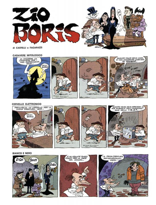 Nel 1968, con gli amici Marco Baratelli, Mario Gomboli e Carlo Peroni crea e dirige la rivista TILT (Editrice Sgt. Kirk). L’anno successivo, con Pier Carpi, dà vita a HORROR (Gino Sansoni Editore), mensile su cui appare la strip ZIO BORIS, disegnata da Peroni. Nel 1972 diventa redattore del CORRIERE DEI RAGAZZI (CORRIERE DELLA SERA), settimanale che accoglie anche alcune sue serie, come GLI ARISTOCRATICI e L’OMINO BUFO. La prima, illustrata da Ferdinando Tacconi, è incentrata su uno stravagante gruppo di ladri gentiluomini. La seconda, disegnata dallo stesso Castelli, è una serie dall’umorismo un po’ sgraziato che fa leva proprio sulle scarse doti grafiche dell’autore. Negli anni Settanta instaura una miriade di collaborazioni con periodici francesi (PIF E SCOOP), tedeschi (ZACK) e ancora italiani (IL GIORNALINO e TOPOLINO).