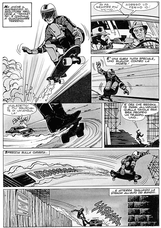 Tra il 1978 e il 1980, Ricci intraprende una collaborazione con il CORRIER BOY, settimanale per ragazzi del CORRIERE DELLA SERA diretto da Raffaele D’Argenzio, disegnando, su testi di Fuschino, REDSKATE. Il protagonista della serie, Kit Skate, è un ricco dandy che, indossata una tuta rossa e un casco, diviene Redskate, una sorta di giustiziere che si muove su uno skateboard, in quegli anni al centro di una straordinaria moda giovanile.