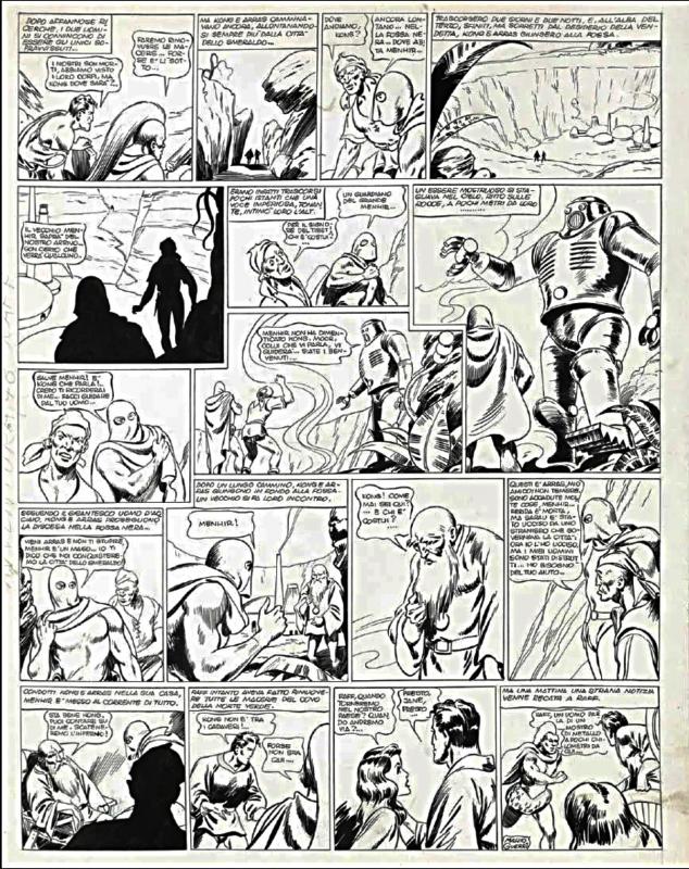 Giornalista, scrittore, ma anche disegnatore e sceneggiatore di fumetti, Alberto Guerri nasce il 15 Maggio 1913 a Roma, città in cui frequenta l’Università nella facoltà di Economia e Commercio. La sua attività di scrittore inizia nei primi anni ’30 collaborando con IL TAMBURINO DELLA GIOVENTU’ ITALIANA ALL’ESTERO un quindicinale edito dalla Segreteria generale dei Fasci all’Estero in stile propagandistico e patriottico indirizzato in maniera specifica ai ragazzi italiani nelle colonie africane e per il quale, oltre a scrivere novelle, racconti e rubriche, sceneggia la storia Italino Tuttosale disegnata dal fratello Mario. Dal 1934 al 1943, utilizzando lo pseudonimo “Agi”, lavora per L’AQUILONE – un giornale edito dall’Editoriale Aeronautica e rivolto agli aeromodellisti – per il quale oltre a scrivere racconti di vario genere, disegna le copertine e realizza illustrazioni e vignette interne. In questo stesso periodo scrive sul mensile AVVENTURE DEL CIELO il racconto Panama-Bogotà mentre, come pubblicista, collabora con le riviste Le vie dell’aria e Ali d’Italia. All’inizio degli anni ’40, lavora per la cartellonistica cinematografica e per la pubblicità, mentre, nel 1942, per la Collana Eroi e Avventure della Nostra Guerra, a cura del Minculpop, scrive gli articoli Bombe su Gibilterra, In Barba agli Inglesi:da Gedda a Derna e La Paura dei siluri. Nel 1944, con altri soci, fonda le Edizioni Pegaso pubblicando il settimanale a fumetti GIRAMONDO su cui dà vita alla lunga saga fantascientifica di RAFF PUGNO D’ACCIAIO, disegnata prima da Vittorio Cossio e dopo dal fratello Mario (il personaggio, dopo la chiusura della testata, prosegue sulle pagine de L’AVVENTURA di Rodolfo Capriotti e le sue avventure saranno più volte ristampate). Inoltre, sempre su GIRAMONDO, scrive il racconto con didascalie Il mistero dell’Everest disegnato da Giulio Ferrari, Il tempio della morte con i disegni di Gaspare De Fiore, Il signor Ernesto disegnato da lui stesso e il racconto a tutto testo L’avventura di Pieter Vermeer. Alberto Guerri, in coppia con Gastone Martini scrive, tra l’altro, il 7° episodio delle avventure di MARGUS. Come redattore si impegna in altre testate della Pegaso quali L’OMETTO PIC, MODELLISMO, Il Corriere dei giochi e scrive e sceneggia con lo pseudonimo G. A. Stone la serie di albi AVVENTURE DI IERI E DI OGGI stampati da Capriotti e disegnati da Vittorio Cossio e altri. Il 6 Agosto 1946 si iscrive all’Ordine dei Giornalisti e, subito dopo, per le Edizioni Astrea sul settimanale IL MOSCHETTIERE (in seguito divenuto IL PIONIERE), prima scrive due racconti a tutto testo (Bill nitroglicerina e Una notte di terrore) e poi firma Le avventure del capitano d’Avegnac illustrate prima da Guido Grilli e dopo da S. Fida. Nel 1947, utilizzando lo pseudonimo di A. Fox, scrive per l’editore Capriotti e per i disegni del fratello Mario, LE AVVENTURE DI FOLGORE mentre, per le Edizioni Modellismo, e intervallandosi ai testi con Gastone Martini, porta avanti LE AVVENTURE DI DAN L’INVINCIBILE disegnate da Renato Polese che qui si firma Bomar. Un anno più tardi, per le Edizioni Esse, crea ORSON L’UOMO DELO SPAZIO disegnato dal fratello e, subito dopo, nel 1949, lo troviamo alle Edizioni Lupettino di C. Turel con la serie di albi L’ARDIMENTOSO DEL CIELO per i disegni del fratello, mentre in coppia anche per i disegni col fratello, realizza FRANCO SETTER REPORTER e i primi 5 episodi di IL PICCOLO FANTOMAS (per queste due ultime testate i fratelli Alberto e Mario Guerri si firmano rispettivamente A. Fox e M. Guy). Con lo pseudonimo J. Vicki Lecuyer per la collana LE GRANDI AVVENTURE dell’ Editrice Mondiale, nel 1949, scrive il cineromanzo I conquistatori del mare ancora illustrato dal fratello e, tra gli anni 1950/52, è grafico-impaginatore del settimanale IL MONDO diretto da Mario Pannunzio e direttore responsabile del settimanale ASSO DELL’AVVENTURA, edito da Arnaldo Fantera, in cui ricompaiono le storie Il mistero dell’Everest, questa volta nella versione a fumetti disegnata da Gaspare De Fiore e una rielaborazione delle Avventure del Capitano d’Avegnac ridisegnata da Franco Verzilli. Dalla fine del 1952 al 1954, è caporedattore del settimanale per i giovani LA VELA delle omonime edizioni, in cui appare un suo racconto a tutto testo di fantascienza astronautica dal titolo L’incredibile avventura, oltre a numerosi scritti di vario genere. In questo periodo i suoi scritti sono firmati sotto diversi pseudonimi: da Andrea Montani a Philip Reed, da Nicholas Moore a Il Capitano Crivello. Nel frattempo, lavora per le edizioni A.V.E. scrivendo e disegnando storie sia per la testata madre IL VITTORIOSO sia per gli albi delle serie TED, JIM BRADY, JOLLY e ALBI TASCABILI (ricordiamo le storie Ali d’argento, La terra dell’oro, La scomparsa del filatelico, Volare nel sole, Dopo la tempesta, Due anni di vacanza, Franco operatore di attualità ed altre ancora). Verso la metà del 1954, chiamato dall’editore Mondadori, si trasferisce definitivamente a Milano, dove ha ricoperto ruoli di responsabilità per riviste come EPOCA e COSMOPOLITAN. Inoltre, ha collaborato con molti altri periodici quali L’Elettricità e Colloqui della Società Edison, nonchè con Esse Lunga e Nuovi Incontri. Si è occupato anche della parte grafica della rivista mensile Diner’s Club e del trimestrale aziendale della società Renault, Presadiretta, tutti impegni questi che ha mantenuto fino al 1988. Dopo lunga malattia, muore il 25 Maggio 2009.Luigi Marcianò