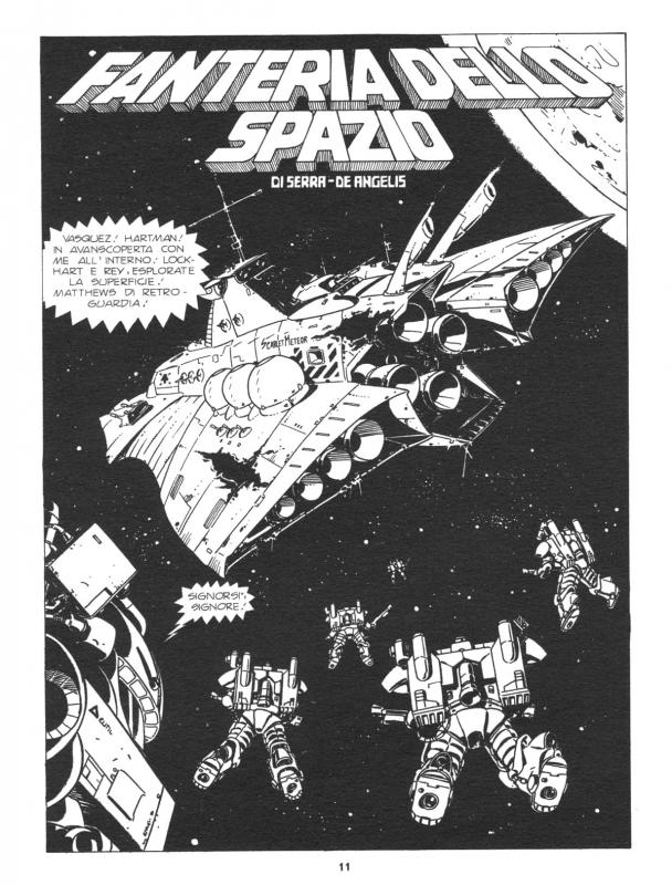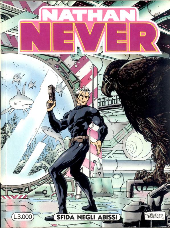 Il tentativo non ha seguito, ma qualche tempo dopo De Angelis riceve una telefonata da Antonio Serra che gli chiede di realizzare alcune tavole per il nascente NATHAN NEVER, prima serie fantascientifica della Casa editrice. La prova ha esito positivo e il disegnatore si ritrova al lavoro sull’episodio “Fanteria dello spazio” (apparso sui numeri 11 e 12 usciti nel 1992) e sul numero zero, albetto introduttivo alla serie, pubblicato nel 1991.