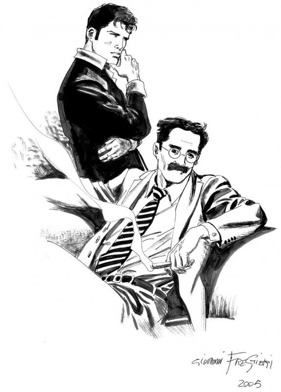 Giovanni Freghieri , come la maggior parte dei disegnatori di fumetti, è attratto dai fumetti sin da giovane età. Subito dopo il diploma comincia a cercare lavoro nel settore. Per questo motivo si reca a Milano, mostrando i propri disegni a svariate case editrici, ma senza risultato. A sedici anni, un po’ casualmente, viene indirizzato al disegnatore Giancarlo Tenenti (classe 1934, al tempo al lavoro su serie western e avventurose per la casa editrice Cervinia). Entrato a far parte dello studio come ragazzo di bottega, Freghieri collabora a CHE GUEVARA e ad altre serie commerciali di quegli anni, senza però trovarsi a proprio agio, sentendo di imparare poco. Ma la sera del suo ventesimo compleanno, di ritorno a casa, trova nella cassetta della posta una lettera della casa editrice Universo, che lo vuole tra i propri collaboratori. Comincia quindi a disegnare per le riviste INTREPIDO e IL MONELLO, per cui firma sia fumetti brevi sia serie a episodi. Tra queste ultime la più famosa è Sorrow, un investigatore che fisicamente ricorda l’attore Humprey Bogart. Le sceneggiature sono di Graziano Cicogna, le storie piccoli noir malinconici grazie ai quali Freghieri affina il suo disegno, sviluppando quelle destinate a divenire sue caratteristiche grafiche: un tratto elegante, un tratteggio ricco, un ampio utilizzo del contrasto tra bianco e nero.Forte dell’esperienza accumulata, nel 1980 passa alla casa editrice Eura, collaborando a LANCIOSTORY e SKORPIO grazie a storie libere e autoconclusive, principalmente di ambientazione western ma anche avventurosa e fantastica.
