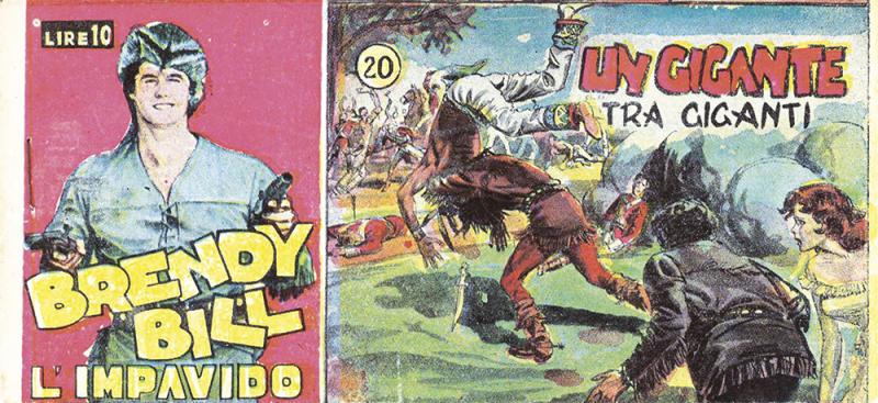Striscia avventurosa con le gesta dell’impavido trapper BRENDY BILL con soggetto e sceneggiatura di Dante Daini e disegni a mezzatinta di Guido Buzzelli (autore anche delle copertine). La serie si interrompe tra il n. 24 ed il n. 25 per due mesi, probabilmente anche a causa della scomparsa dell’autore dei testi, l’editore Dante Daini, morto per infarto il 5 luglio 1950. Nelle ultime pagine storielle comiche di Enver Bongrani e altri. Annunciato per settembre 1950 un nuovo albo “I moschettieri del Re” (Lire 10), ma non reperito.
