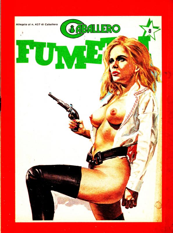 AL1 - CABALLERO FUMETTI nn. 1/8 - suppl. ai nn. 430/437 - s.d. (1980) - 32 pgg. autocop. - cm 15,5 x 21 pm - Bianco e nero. Pubblicano fumetti hard di provenienza straniera. Le copertine, che non rispecchiano il contenuto, invece sono riprese da altre collane della Galax: PUSSYCAT, GENGISKHANA, FANTHOMAN, LE FANTASTICHE TRE.