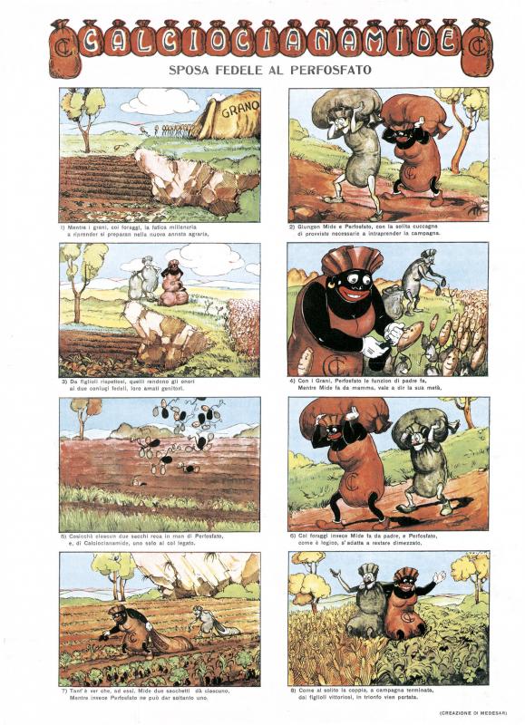 CALCIOCIANAMIDE, pubblicazione pubblicitaria esce a Roma stampata da Grafiche I.G.A.P. (nn. 1/3 - luglio-dicembre 1934/gennaio-giugno 1936 - 4 pgg. autocop. - cm 29,7 x 40 pc - Misto - Omaggio). Pubblica brevi fumetti pubblicitari con didascalia. Rif. 1/3 luglio-dicembre 1934/gennaio-giugno 1936.