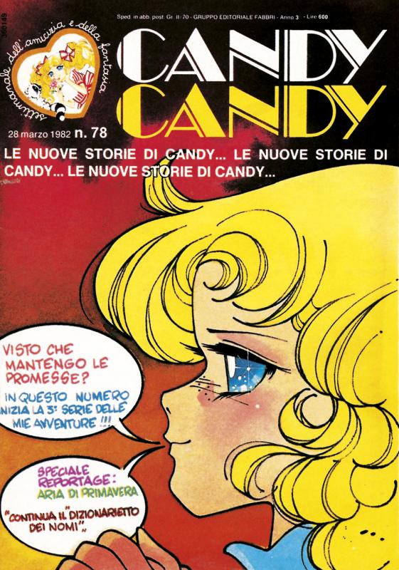 Traduzione del manga della casa editrice giapponese Kodansha, realizzato da Kyoko Mizuki (testi) e Yumiko Igarashi (disegni). Dal n. 78 (28 marzo 1982), esaurita la produzione nipponica, le avventure di CANDY CANDY vengono continuate dallo Staff di If. Testi di Alfredo e Andreina Saio, Marcello Toninelli. Disegni di Ambra Costa, Luigi Mausoli, Corrado Musap, Marco Torricelli, Manlio Truscia. Dal n. 175 (5 febbraio 1984) la testata diventa CANDY CANDY TV JUNIOR e dal n. 241 (12 maggio 1985) CANDYISSIMA. Dal n. 23 (4 marzo 1981) aumentano le pagine e la rivista si arricchisce di rubriche dedicate a moda, bellezza, viaggi, sport e bricolage; le copertine sono di Sergio Frigerio. Dal n. 53 (4 ottobre 1981) al n. 96 (1 agosto 1982) sono pubblicate le avventure di LUNA, altro manga della Kodansha realizzato da Chieko (ristampato poi dal n. 259 del 15 settembre 1985). Altri shojo manga pubblicati sono: SUSY DEL FAR WEST di Yumiko Igarashi, dal n. 97 (8 agosto 1982) al n. 144 (3 luglio 1983), ristampato a partire dal n. 283 (2 marzo 1986); KITTY La stella del circo di Yumiko Igarashi e Kyoko Mizuki, dal n. 145 (10 luglio 1983) al n. 168 (18 dicembre 1983), ristampato dal n. 312 (21 settembre 1986); JULIET di Chieko Hara, dal n. 169 (25 dicembre 1983) al n. 173 (22 gennaio 1984); VIA COL VENTO, manga disegnato da Mukumi Tumuko e basato sull’omonimo romanzo di Margareth Mitchell, dal n. 174 (29 gennaio 1984) al n. 237 (14 aprile 1985) e dal n. 242 (19 maggio 1985) al n. 258 (8 settembre 1985); ROSA PASTICCIO di Ikeda Riyoko Productions, dal n. 174 (29 gennaio 1984) al n. 178 (26 febbraio 1984); PRIMO AMORE Ikeda Riyoko Productions, dal n. 179 (4 marzo 1984) al n. 181 (18 marzo 1984); LA STORIA DI ALICE di Chiekio Hara, dal n. 182 (25 marzo 1984) al n. 227 (3 febbraio 1985) e ristampato dal n. 324 (14 dicembre 1986); GEORGIE di H. Igarashi e M. Izawa, dal n. 211 (14 ottobre 1984); “Cuore”, una sorta di fotoromanzo con le immagini dell’omonimo sceneggiato trasmesso da RAI 2, dal n. 210 (7 ottobre 1984) al n. 215 (11 novembre 1984); LO SPECCHIO MAGICO di Fujio Akatsuka, dal n. 218 (2 dicembre 1984); UNA ROSA UN AMORE, dal n. 228 (10 febbraio 1985); EVA JONES, le comic strip di Stan Drake, dal n. 236 (7 aprile 1985) al n. 258 (8 settembre 1985).