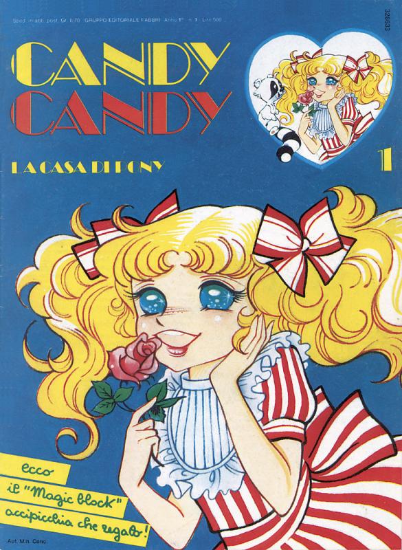 RC1 - La serie è raccolta in 129 albi dal titolo LE AVVENTURE DI CANDY CANDY (Quindicinale - 92 > 192 pgg. + cop. - cm 16,5 x 23 > 14,5 x 20,5 dq - 4 + 4 - Lire 1.200 > 1.700) che escono come supplemento dal 1981 al dicembre 1986. Ogni numero raccoglie 3 fascicoli. In alcuni numeri sono allegati poster, adesivi o altro materiale relativo alla serie.