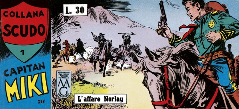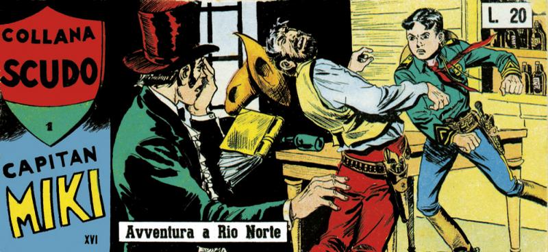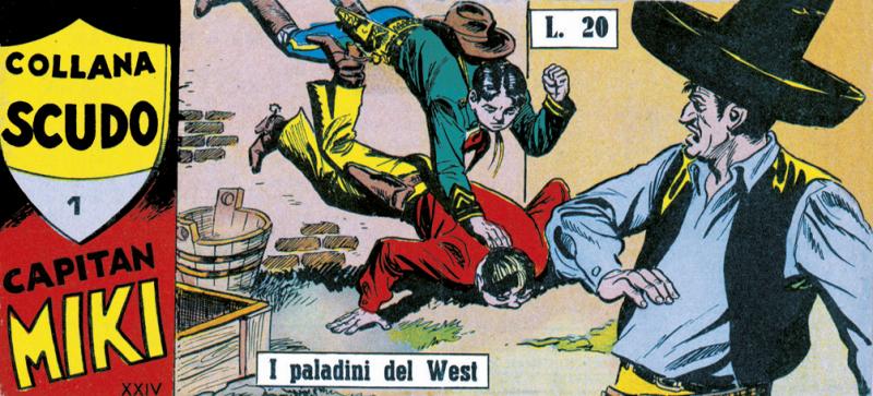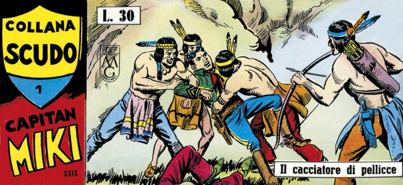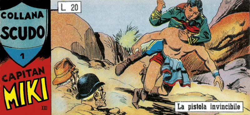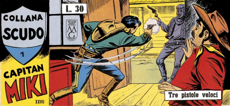 Nuova serie di COLLANA SCUDO (la precedente ha presentato I 3 DESPERADOS) con albi a striscia che pubblicano tutte le storie originali di CAPITAN MIKI sia nella versione della EsseGesse (Serie 1/30) sia in quella di Amilcare Medici (testi), Franco Bignotti e Nicolino Del Principe (disegni).