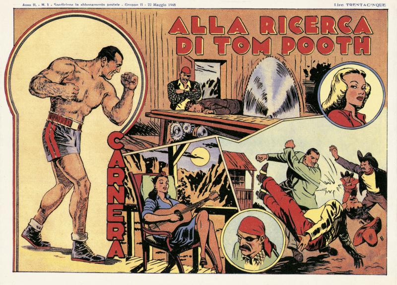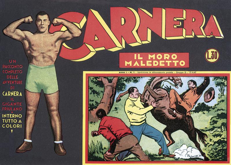 Avventure di CARNERA, il gigante friulano re del ring, scritte da Tristano Torelli e disegnate da Franco Paludetti e Camillo Zuffi (Serie I e II) e da Nino Puglisi (Serie III, nn. 1/15), Pini Segna (nn. 16/24), Pietro Sartoris e Dario Guzzon (Sargù) (nn. 25/27) e Giovanni Sinchetto (nn. 28/46).