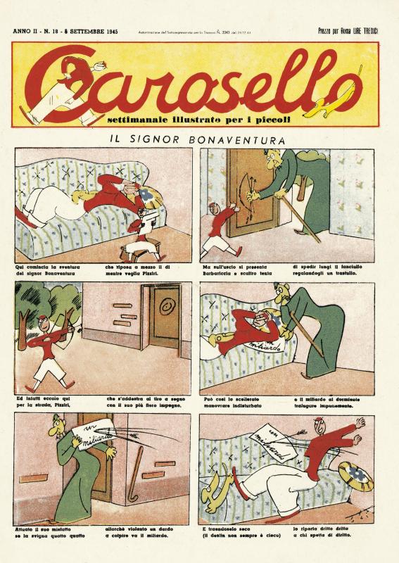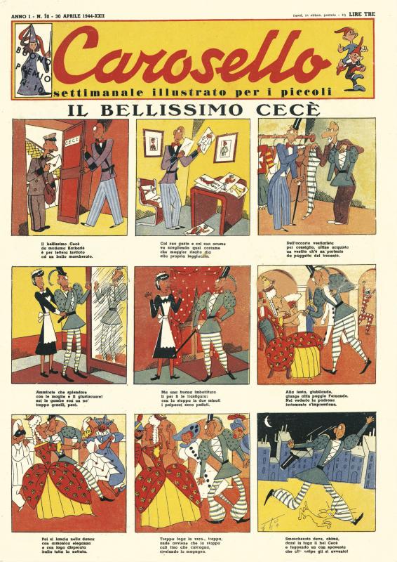 Giornale: pubblica IL BELLISSIMO CECÈ e IL SIGNOR BONAVENTURA di Sergio Tofano (Sto), GHETANACCIO di Mario Pompei, BABAR, FINISTERRA di Scarpelli, DON ALVARO celeberrimo corsaro di Giobbe, SCARNABECCHIO di Zedda, PAESANELLO di Longi. Inoltre disegni di Onorato, De Seta, F. Di Sarno, M. Iocca. Testi in prosa di Eros Belloni.