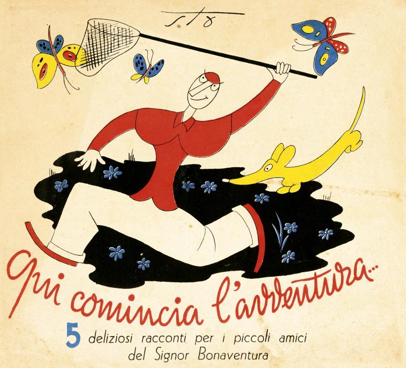 ES1 - "Qui comincia l'avventura..." Edizioni Cosmopolita - s.d. - 12 pgg. + cop - cm 24,5 x 22 pm - 4 + 4 - Lire 50. Librettino che ripropone 5 storielle de Il BELLISSIMO CECÈ e de IL SIGNOR BONAVENTURA di Sergio Tofano (Sto).