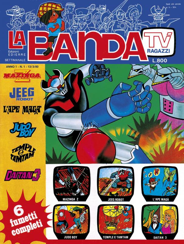 Albo contenitore di ampio formato, riduce a fumetti le più famose serie dei cartoni animati giapponesi trasmessi in tv, affidandone la realizzazione ad autori italiani. Testi di Andrea Mantelli e Vincenzo Perrone. Disegni inizialmente dello studio di Giuseppe Calzolari (MAZINGA Z, JEEG ROBOT, TEKKAMAN, GAIKING) cui si affiancano Umberto Manfrin (TEMPLE E TAM TAM), Giovanni Sforza Boselli (CHARLOTTE), Angelo Scariolo (PINOCCHIO e HUCK FINN), Leone Cimpellin (RYÙ e KEN FALCO), Paolo Ongaro (DAITAN 3), Antonio Terenghi (THE MONKEY), Studio Felmang (JUDO BOY, KUM KUM). Di produzione straniera L’APE MAIA e GUERRE FRA GALASSIE (Star Wars) (nn. 17/21). Copertine di Mario Caria. La collana prosegue con testata CARTONI IN TV.