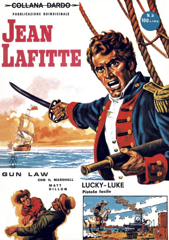 Periodico contenitore ha inizialmente formato albo d’oro e dal n. 13 quello di libretto. Presenta JEAN LAFITTE di Onofrio Bramante; GUN LAW e MATT DILLON di Harry Bishop; LUCKY LUKE di Goscinny e Morris (nn. 1/21); dal n. 17 anche BUCK JONES e dal n. 21 anche JEFF ARNOLD la cui testata si fonde con COLLANA DARDO. Copertine di Dino Busett (nn. 1/12) e di autori spagnoli.