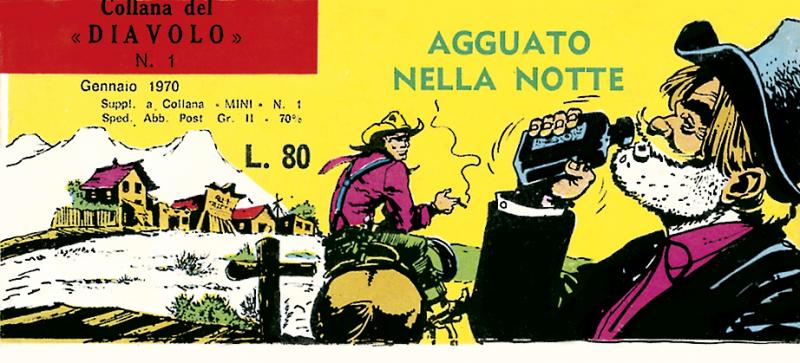 Volumetto a striscia che ristampa CAPITAN WEST di Gianfranco Marcucci (Gianmark) e Gino Cossio. Escono come supplemento alla COLLANA I MINI. In costa appare la scritta Collana Diavolo. Il n. 1 ha all’interno il titolo “Il forte della morte” e annuncia come n. 2 “Agguato nella notte”, titolo di copertina del n. 1. Annunciato, ma non reperito, il n. 5 “La rivincita di West”.