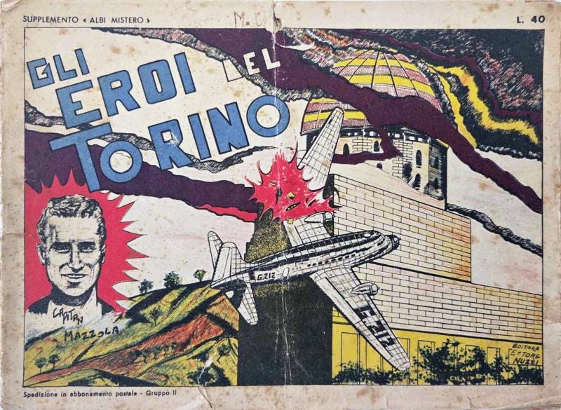 SP1 - "Gli eroi del Torino" - SUPPLEMENTO ALBI DEL MISTERO - sd - 16 pag. autocop. - pm - bianco e nero - Lire 40. Racconto a fumetti con inserti di foto, sulle gesta dei calciatori del Torino. Testi di Ettore Nuzzi. Disegni di Luigi “Gino” Anelli