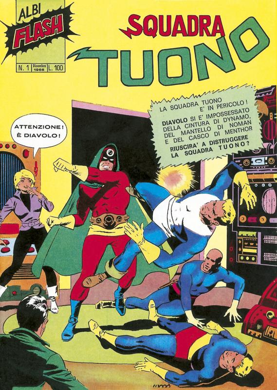 La collana traduce la serie americana T.H.U.N.D.E.R. Agents, pubblicata dalla Tower Comics per venti numeri, usciti tra il novembre 1965 e il novembre 1969. Ne sono protagonisti gli agenti della SQUADRA TUONO, ognuno dotato di un particolare potere: Dynamo, NoMan, Menthor, Lightning (Lampo) e Raven (il Corvo), insieme con i loro amici e nemici, tra i quali spiccano Weed, Kitten e gli altri componenti della T.H.U.N.D.E.R. Squad da un lato, e The Iron Maiden (La Signora di Ferro) dall’altro. Da un’altra serie della Tower Comics, Undersea Agent, sono invece tratte le avventure degli AGENTI SUB. I testi sono di Wally Wood, Len Brown, Larry Ivie, Bill Pearson e Steve Skeates. I disegni di Wally Wood, Dan Adkins, John Giunta, Mike Sekowsky, Ray Bailey, Steve Ditko, Gil Kane, George Tuska, Manny Stallman, Ogden Whitney, Sal Trapani. Altri episodi della SQUADRA TUONO e degli AGENTI SUB vengono pubblicati nello stesso periodo anche in appendice a L’UOMO MASCHERATO - Avventure Americane (F.lli Spada, 1967) e MANDRAKE - Albi Il Vascello (F.lli Spada, 1967) e saranno poi ospitati su COMICS RAMA (Bertelli, 1968).