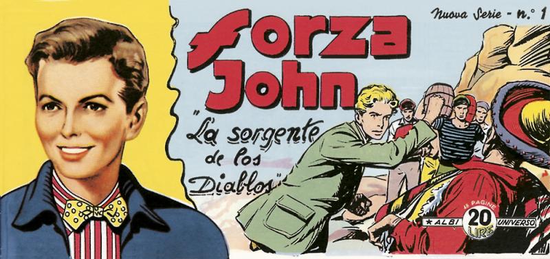 La testata dal n. 2 (s.d.) diventa FORZA JOHN. La prima serie esce come inserto omaggio all’INTREPIDO e in cronologia, tra parentesi, è indicato al numero a cui è allegato. Nei nn. 1/3 la numerazione in copertina è doppia, perché compare anche quella dell’INTREPIDO. Dal n. 4 appare la scritta Quarta puntata - suppl. all’INTREPIDO n. 42 e così prosegue fino al n. 34 del 1951. Il disegno di copertina cambia con il n. 5, che è l’unico numero ad avere il personaggio in campo rosa. Per tutta la serie è infatti in campo giallo. Sul n. 12 (13 novembre 1951) si annuncia l’uscita di LIBERTY KID (60 pgg. a colori, Lire 25) che poi esce con testata INTREPIDO. Dal n. 17 (18 dicembre 1951) cambia la grafica della copertina. Il disegno del personaggio in copertina cambia con i nn. 20 (8 gennaio 1952), 24 (5 febbraio 1952), 48 (22 luglio 1952), 55 (9 settembre 1952) e 56 (16 settembre 1952). Nel 1953 le storie di FORZA JOHNvengono trasferite su IL MONELLO dove continuano fino al 1964.