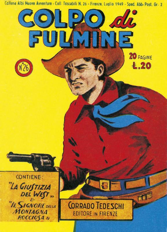 Edizione tascabile della collana ALBI NUOVE AVVENTURE che presenta : LE AVVENTURE DEL GRAN CAPO BAKALON (Big Chief Wahoo) (GB) di Allen Saunders ed Elmer Woggon; GENNY LA VOLANTE (Flyin’ Jenny) (GV) di Russell Keaton; LONE RANGER (LR) di Charles Flanders; IL CAVALIERE ROSSO (Red Ryder) (CR) di Fred Harman; COLPO DI FULMINE (Hopalong Cassidy) (CF), TOM MIX e DICK MONTES (Monte Hale) (DM), tutti tratti dai comic books della Fawcett, con testi di Otto Binder e Paul S. Newman e disegni di Carl Pfeufer e John Jordan. E ancora IL FANTASMA MASCHERATO (The Phantom) (FM), PIPPO IL GUASTAFESTE (PG) e i QUATTRO RAGAZZI (4R).