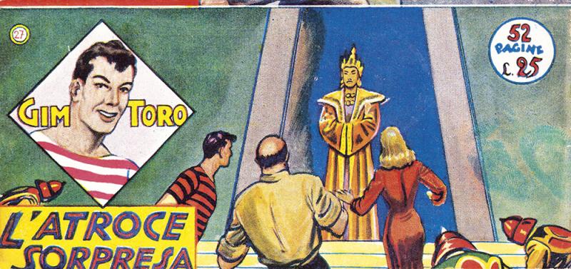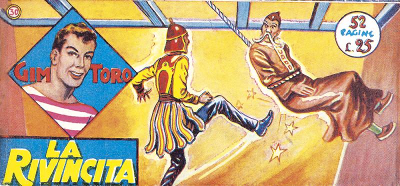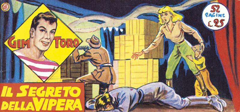 Ristampa delle prime avventure di GIM TORO in formato striscia con vignette ingrandite rispetto all’originale e copertine a mezza tinta opera di Edgardo Dell’Acqua. Ogni albo corrisponde a un fascicolo e mezzo della Serie Gialla, della quale vengono riproposti i nn. 1/64. Sull’ultimo numero vengono aggiunte delle pagine inedite disegnate da Dell’Acqua per dare un finale a un’avventura che altrimenti sarebbe rimasta incompiuta. In appendice racconti a tutto testo di autori ignoti. A eccezione dei nn. 16, 30, 33, 36/39, i titoli dei volumetti sono gli stessi della serie originale. Le vignette dei primi numeri, in cui GIM TORO compariva nella prima versione, cioè con i baffi, sono state sostituite con altre inedite in cui il personaggio ha l’aspetto definitivo.