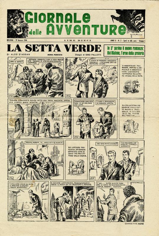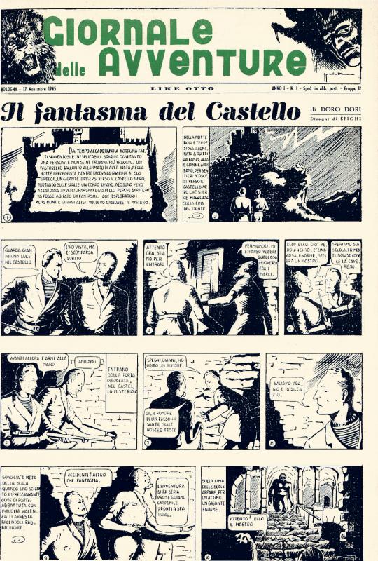 Foglio di otto pagine stampate in bianco e nero su carta povera. Esce il sabato come supplemento a «Il Giornale dell’Emilia», come si presenta nell’immediato dopoguerra «Il Resto del Carlino», compromesso come tanti dal Ventennio, e testata che mantiene per circa dieci anni. La sola prima pagina è in bicromia (nero e verde). Al suo interno il contributo di tanti dilettanti e futuri professionisti come Gino Pallotti, poi colonna portante dei periodici della Casa Editrice Universo. Pallotti, che è anche l'autore della testata, esordisce fin dal primo numero con “La setta verde” scritto da Alco D’Assan e poi realizza “Il mostro umano” su testi di Vinci. Le altre quattro serie a fumetti sono “Il fantasma del castello”, siglato dallo sceneggiatore Doro Dori e dal disegnatore Luigi Spighi, il western "Kid Malone l'eroe della prateria" scritto da Vinci e disegnato da G. Iloja, "Occhi di Giada" scritto da Vandi per i disegni di Luigi Spighi e "Un piccolo eroe" di Alco d'Assan e Luigi Spighi; "La leggenda di Poggiofiorito" disegnata da Piero Pietra su testi di Garani è a didascalie. Completano il numero racconti in prosa scritti da Arnaldo Frascaroli, Felis, Nucia e C. Giuliani con illustrazioni di Piero Pietra. All'interno si pubbicizzano albi (come "Le avventure di Sorcettino") e giochi (come "teatrino magico") della S.A.E.S. di Bologna.