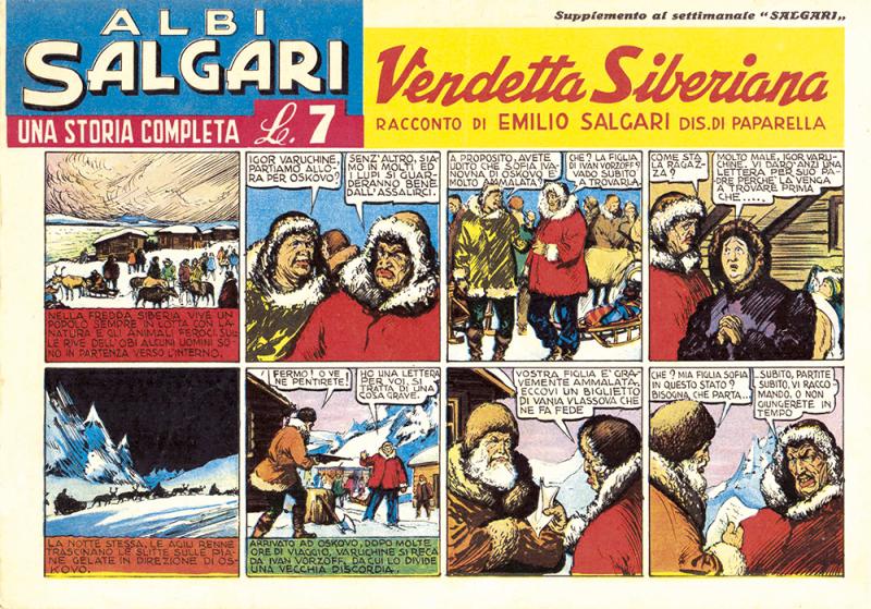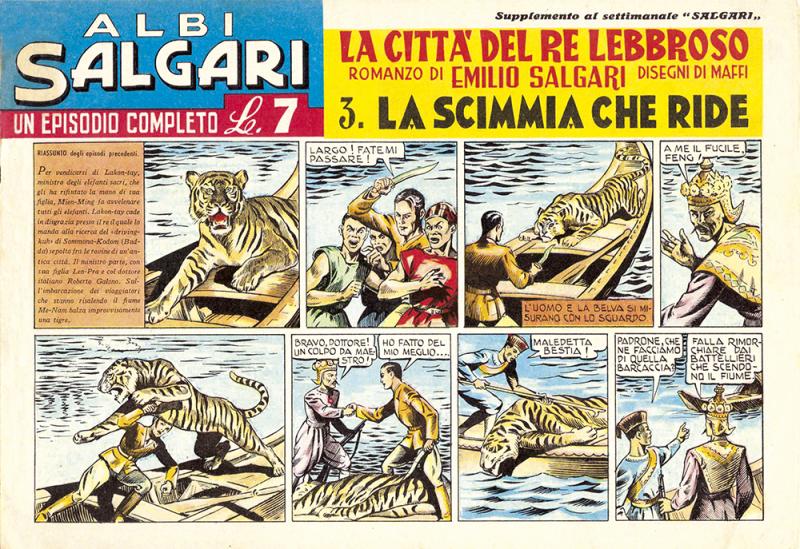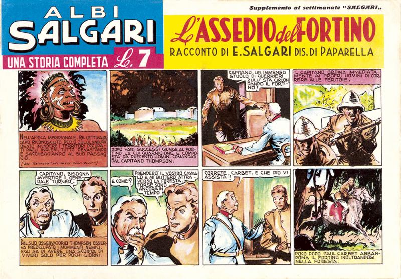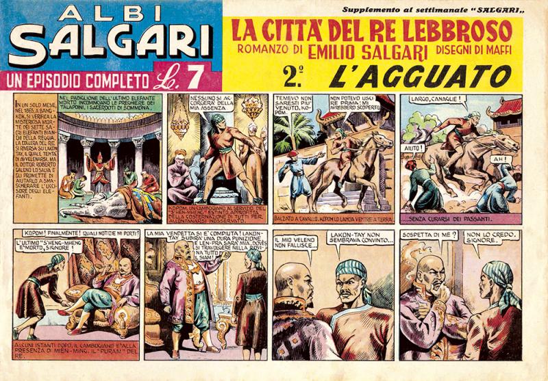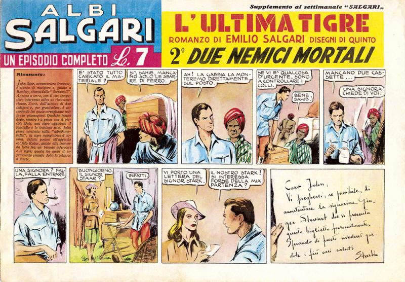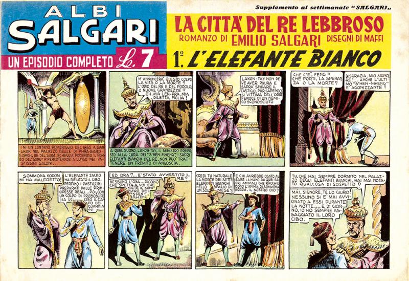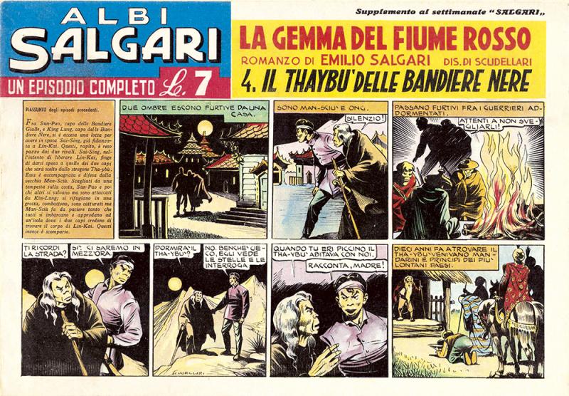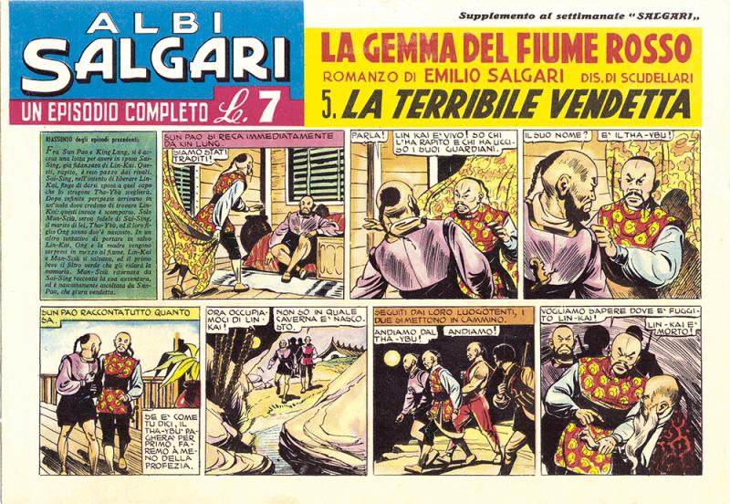 Gli albi escono in blocchi di quattro alla volta, come supplementi al giornale SALGARI con cadenza mensile. Presentano i cicli “La gemma del fiume rosso” (n. 1, 2, 7, 9, 13, Giorgio Scudellari), “L’ultima tigre” (nn. 4, 8, 10, 14, Nadir Quinto), “La città del lebbroso” (nn. 5, 6, 11, V. Maffi) e “La città dell’oro” (n. 12, Enzo Magni) e altre storie brevi disegnate da Raffaele Paparella (nn. 3, 16) e Franco Chiletto (n. 15). Annunciato, ma mai pubblicato, un quinto lotto di altre quattro storie. In ultima pagina c'è il concorso "Chi farà parlare il giornale muto?", una serie di 16 gag da fumettare.