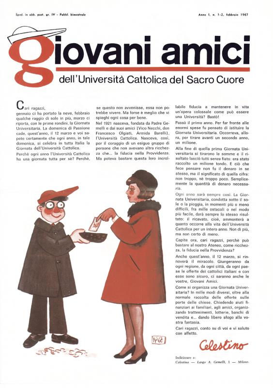 Una delle prove più significative del cambiamento risale al gennaio 1967, quando il bimestrale si rinnova graficamente e la numerazione ricomincia da 1 (12 pgg. autocop. - cm 24,5 x 34 pc - Bianco, nero e rosso - s.i.p.). Presenta rubriche informative sull’università e sulle sue iniziative, un racconto illustrato, alcuni giochi enigmistici e la pagina della “giovane amica” con rubriche di bricolage. Seguono graduali trasformazioni dal punto di vista dei contenuti e della formula editoriale, con l’aumento delle rubriche di attualità e l’introduzione di brevi episodi a fumetti, che portano la testata a diventare un vero e proprio mensile di ispirazione cattolica con finalità educativo-pedagogiche per bambini dai 5 ai 12 anni. Vengono intensificati inoltre i contatti con pubblicazioni analoghe in altri Paesi europei per creare una sorta di catena editoriale per la fascia di età che va dalla fine della scuola materna al primo anno delle medie inferiori.