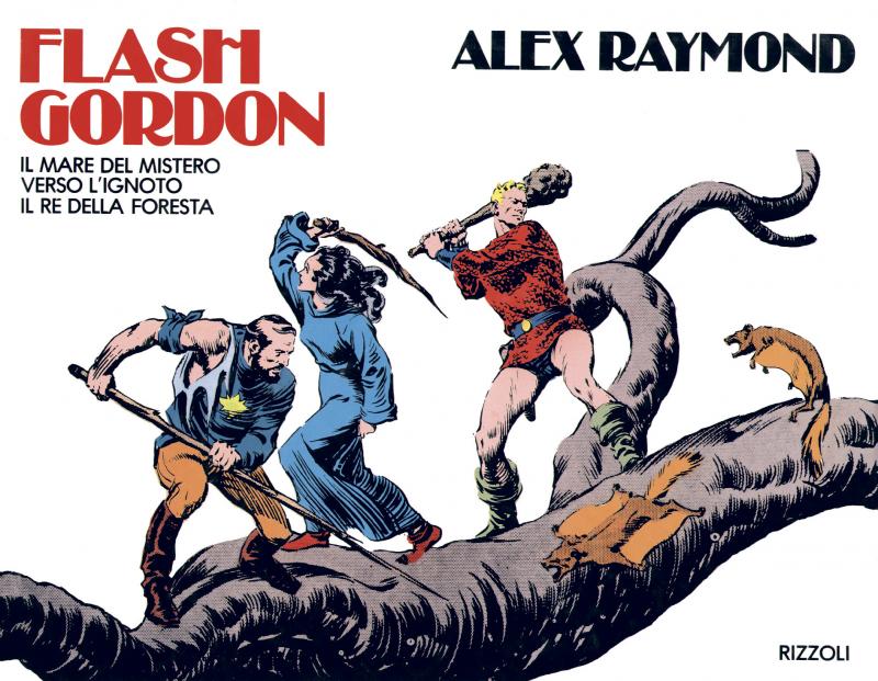 In Italia GORDON esordisce, inizialmente con il nome di Gordon Flasce, il 14 ottobre 1934 sul n. 1 del L’AVVENTUROSO della Nerbini, che lo pubblica ininterrottamente fino al n. 206 (18 settembre 1938), quando viene censurato dal regime fascista. Come per altre serie, l’editore fiorentino ristampa le storie pubblicate sul settimanale in sette grandi albi in tricromia che escono come supplemento a L’AVVENTUROSO tra il 1935 e il 1938. Nel dopoguerra i diritti del personaggio passano alla S.E.P.I. dell’editore romano Capriotti che, ribattezzato l’eroe americano GORDON L’INTREPIDO, lo pubblica sul settimanale L’AVVENTURA a partire dal 1944 e, dopo la chiusura della testata, sul mensile AVVENTURA Club Comics Americani (1949). Il materiale in parte viene poi ristampato dallo stesso Capriotti su ALBO AVVENTUROSO serie GORDON (1948). Nel 1948 escono anche delle avventure di GORDON apocrife disegnate da Guido Vitelli e pubblicate su ALBUM DI AVVENTURE (E.R.O.L.A.). Intanto, le strisce giornaliere che vanno dal 12 settembre 1940 al 23 settembre 1941, attribuite ad Alex Raymond ma realizzate da Briggs, compaiono su TOPOLINO (Mondadori, 1946). Persi i diritti, a Nerbini non rimane che proseguire con le ristampe. Nel 1946 viene varata la serie GORDON nella COLLANA ALBI GRANDI AVVENTURE (3) che si compone di trenta albi di cui i primi ventuno effettivamente firmati da Raymond, ma con alcune vignette lucidate, e i rimanenti sette disegnati da Guido Fantoni su testi originali. I ventuno albi vengono ancora rieditati nel 1957/58 con testata Avventure di GORDON. Durante gli anni Cinquanta GORDON, nella versione di Mac Raboy e Dan Barry, viene pubblicato dalle Edizioni Adriana e Aurelia in un albo intitolato LE AVVENTURE DI GORDON, che esce nel 1952 come supplemento ad ALBO TRAGUARDO (3) n. 5, e su due numeri di ALBO AZZURRO (1952) e ALBO ELEFANTE (1954). L’editore Gioggi lo ospita sulla collana CELEBRI EROI DELL’AVVENTURA (1956). Nel 1960 l’Editoriale Corno presenta la produzione giornaliera di Dan Barry e quella domenicale di Don Moore e Mac Raboy su L’ARDIMENTOSO e Superalbo L’Ardimentoso GORDON. Per avere una nuova edizione dell’eroe che comprenda tutta l’opera di Raymond, seppure con vignette ritoccate e malamente ricolorate, i lettori italiani devono attendere il 1964, quando i Fratelli Spada di Roma danno alle stampe il quattordicinale GORDON. Alla chiusura della testata le avventure del biondo avventuriero proseguono su MANDRAKE (2), a partire dal n. 195 del 1971. Il materiale dell’edizione 1964 viene riproposto ancora nel 1977 e nel 1980.