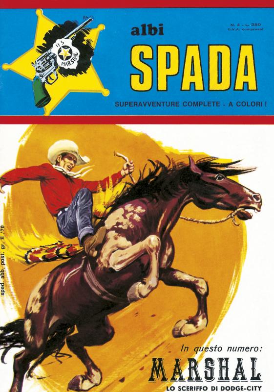 Nella collana si alternano le storie di TUROK (TU) (testi Paul S. Newman, disegni di A. Giolitti, nn. 1, 5, 9, 13, 16, 19, 22, 25, 28, 30), STAR TREK (ST) (testi di Arnold Drake, disegni di A. Giolitti, nn. 2, 6, 10), MAGNUS (MA) (testi di R. Manning, R. Kyle, M. Royer, disegni di R. Manning, M. Royer, Dan Spiegle, Paul Norris, nn. 3, 7, 11, 14, 17, 20, 23, 26) e MARSHAL (MR), (testi di P. S. Newman, E. Freiwald, R. Schaefer, disegni di A. Giolitti e A. Ticci, nn. 4, 8, 12, 15, 18, 21, 24, 27, 29), che dal 1973 al 1974 avevano testate autonome sempre sotto la sigla generica di ALBI SPADA. La periodicità è spesso irregolare con lunghi intervalli di non pubblicazione.