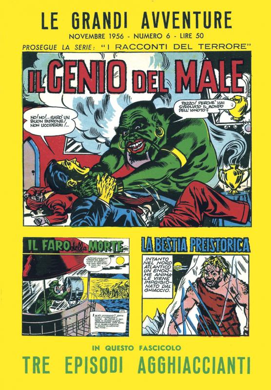 La serie presenta prima quattro numeri in formato libretto con protagonista L’UOMO BAMBÙ e in appendice FRECCIA DI FUOCO (Straight Arrow) di Gardner Fox e Fred Meagher; e CIOP CIOP realizzati dallo stesso disegnatore di «Marmaduk Mouse». Con il n. 5 (settembre 1956) passa al formato comic book proponendo in ogni numero tre differenti episodi di genere horror; in apertura “I demoni dell’inferno” (n. 5) e “Il genio del male” (n. 6, novembre 1956). Tutto il materiale è tratto da albi di case editrici minori americane come la Magazine Entreprises (1950/54). L’editore pubblica anche il rotocalco «Realtà illustrata».