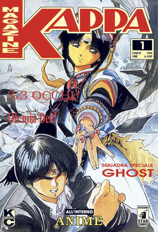 3 x 3 OCCHI (Yuzo Takada), SQUADRA SPECIALE GHOST(Masamune Shirow), DIRTY PAIR (romanzo a puntate di Haruka Takachiho illustrato da Roberto Baldazzini, Luca Poli, Onofrio Catacchio,Vanna Vinci, Andrea Accardi, Antonio Serra e Franco Saudelli), OH MIA DEA! (Koosuke Fujishima), GUN SMITH CATS (Kenichi Sonoda), COMPILER (Kia Asamya), GUNDAM 0080 (Tomino/Yadate/Ikehara), GON (Masasashi Tanaka), LUPIN III (Monkey Punch), GUNDAM F-91 (Tomino/Yadate/Inoue), FATAL FURY (Ken Ishikawa), ISSHUKU IPPAN (Monkey Punch), ZETA (Otomo/Okada), ASSEMBLER OX (Kya Asamya/Studio Tron), CALM BREAKER (Masatsugu Iwase), SD GUNDAM GX (Tetsuya Kawaishi), URD & SKULD (Kosuke Fujishima), WORLD APARTAMENT HORROR (Katsuhiro Otomo/Satoshi Kon), BUG PATROL (Tadatoshi Mori), NAGAREBOSHI SAKON (Ryoichi Ikegami), CHANGING FO (Too Nakazaki), SAINT CLOTH (speciale natalizio a colori) (Oriba Sekiro), GENZO (Yuzo Takada), SAILOR MOON (Naoko Takeuchi), OFFICE REI (Sanae Miyau/Hideki Nonomura), EXAXXION (Kenichi Sonoda), HIBRID KIDS (Hideaki Oikawa), KUROGANE (Keiji Toume), MILLE DEMONI (Masaki Segawa), RYUGETSUSHO (Ryoichi Hikegami), AI LOVE YOU x 2 (Kaishaku), CHE MERAVIGLIA! (Hiroshi Yamazaki) a colori, AITEN MYOO (Ryusuke Mita), NARUTARU (Mohiro Kito), ARMS (Masamune Shirow), KAMIKAZE (Satoshi Shiki), MICHAEL (Makoto Kobayashi), NOISE (Tsutomu Nihei), I GOLFINI DELLA NONNA (Akiro Matsuda) (n. 100, episodio autoconclusivo), SOLE MALEDETTO (Fuyumi Souryo) (n. 103, episodio autoconclusivo), CHOBITS (Clamp), FUGURA MEMORIES (Kei Tome), GLASS GARDEN (Hiroyuki Hutatane) (n. 111 episodio autoconclusivo), HANG (Hiroki Endo) (n. 111 episodio autoconclusivo), NAVI (Kaoru Shintani) (n. 112 episodio autoconclusivo) . All’interno: Anime, 16 pgg. a colori, una sorta di rivista nella rivista dedicata al mondo dell’ animazione giapponese a cura dei Kappa Boys (Andrea Baricordi, Massimiliano De Giovanni, Andrea Pietroni e Barbara Rossi). Dal n. 77 (novembre 1998) al n. 104 (febbraio 2001) si alternano numeri di 128 pgg. + cop. a Lire 6.000 (nn. 78/79, 81/82, 84/85, 87/88, 90, 93, 96, 98/99, 101/102, 104) a una versione “plus” di 256 pgg. + cop. a Lire 8.000 (nn. 77, 80, 83, 86, 89, 91, 97, 100, 103).