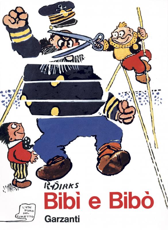 Creato da Rudolph Dirks nel 1897, è tra i più longevi fumetti della storia. Ispirato ai gemelli di Busch, MAX UND MORITZ, narra le vicende di ragazzini terribili, il cui unico scopo nella vita sembra essere quello di architettare scherzi e monellerie. La serie è al centro di un famoso processo nel 1912, quando l’autore lascia il «New York Journal» per passare alla concorrenza. La sentenza decide per lo sdoppiamento: il nome KATZENJAMMER KIDS rimane di proprietà di Hearst, il primo editore, che affida la serie ad Harold Knerr, mentre Dirks ribattezza “The Captain and The Kids” la versione che realizza per il «World». Nel 1968 Rudolph Dirks è sostituito dal figlio John, mentre a Knerr subentrano prima Doc Winner (1949), poi Joe Musial (1956). La serie è portata in teatro nel 1903 e in animazione nel 1938.In Italia compare con il nome di CAPITAN COCORICO’ e di BIBI’ E BIBO’ su CORRIERE DEI PICCOLI (Corriere della Sera, 1912 e 1915), GIOVEDI’ (Giovedì, 1945), L’ILLUSTRAZIONE DEI RAGAZZI (A.P.E., 1945); come CAPITAN BOMBA su ALBI NUOVE AVVENTURE (Corrado Tedeschi, 1946); come CAPITAN MANGIASPUGNE su JUMBO (S.A.E.V., 1932); come CAPITAN COCORICò e di BIBI’ E BIBO’ su ASTROAVVENTURA (Gioggi, 1953), CORRIERINO TASCABILE (Corrado Tedeschi, 1953), SGT. KIRK nn. 15, 17 (Sgt. Kirk, 1967/97), EUREKA (Corno, 1968), I GIGANTI DEL FUMETTO (Rizzoli, 1975), CONFIDENZE (Mondadori, 1975), GLI ALBI DEL CORRIERE DEI PICCOLI (Rizzoli, 1981). Con il nome di THE KATZIES compare invece su COMIC ART (Comic Art, 1984).