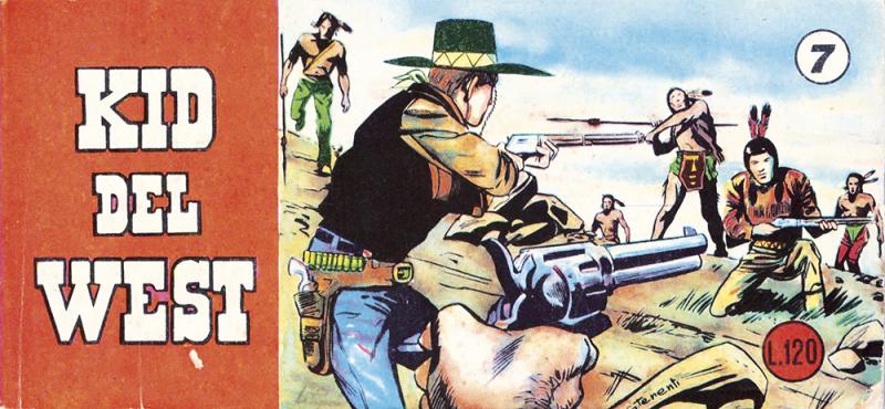 Avventure western di KID DEL WEST e il suo compagno Arco Veloce scritte da Cesare Melloncelli e disegnate da Giancarlo Tenenti. In appendice i racconti a continuazione “Missione su Abor” e “Fred la tigre” (pugilistico). Il n. 8 è privo di titolo, ma sul n. 7 è annunciato l'episodio "Sentiero di guerra".