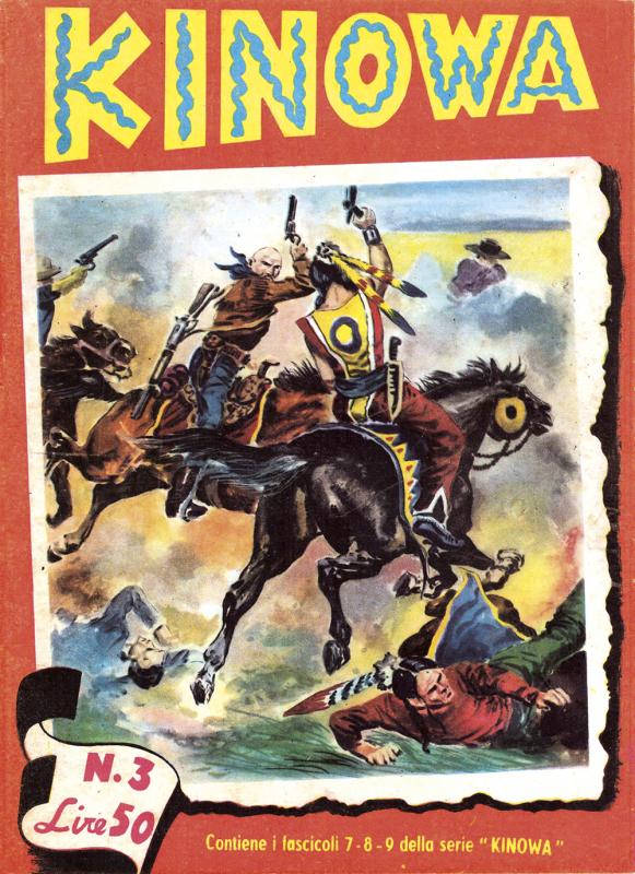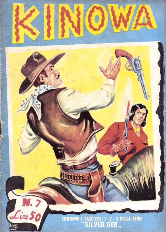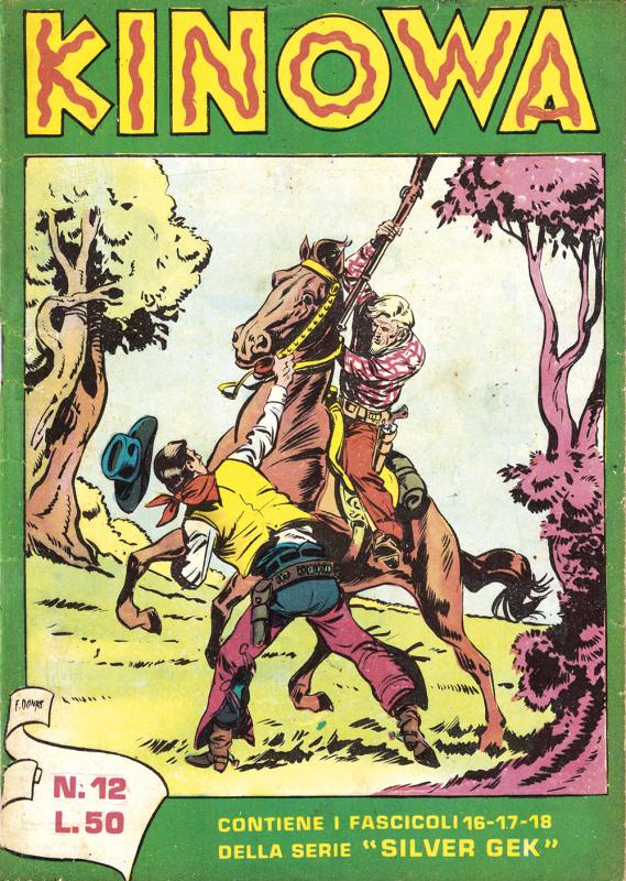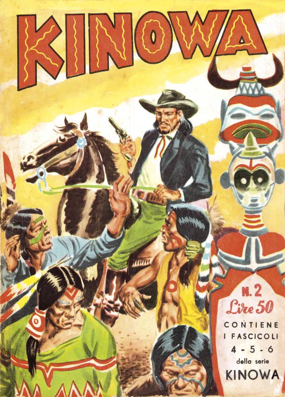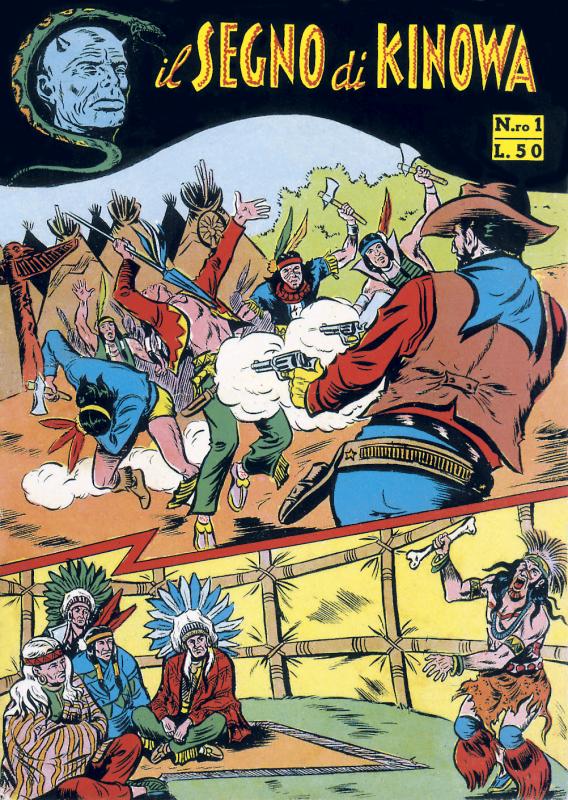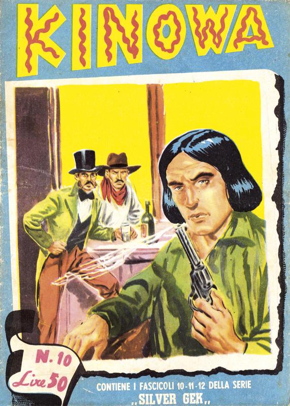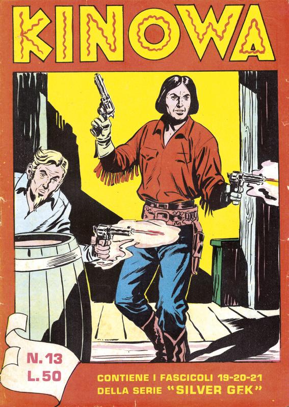 Prima ristampa dell’intera serie di KINOWA ripresentata nel formato albo d’oro. È suddivisa in sei serie (la prima comprende senza alcuno stacco la prima e la seconda originali: KINOWA e SILVER GEK) formanti il ciclo completo delle storie pubblicate: ogni uscita contiene tre episodi della serie originale. Copertine di Franco Donatelli, Sergio Tarquinio, Emilio Uberti, Pietro Gamba. In questa edizione viene inserita l’avventura “Nel paese di là” apparsa per la prima volta nella strenna CALENDARIO WESTERN (Dardo, 1951) per i disegni di Pietro Gamba.