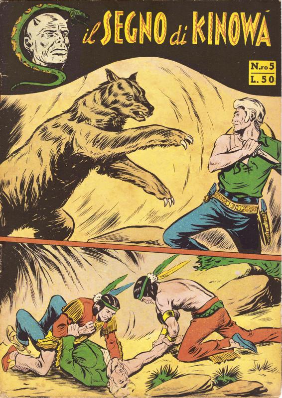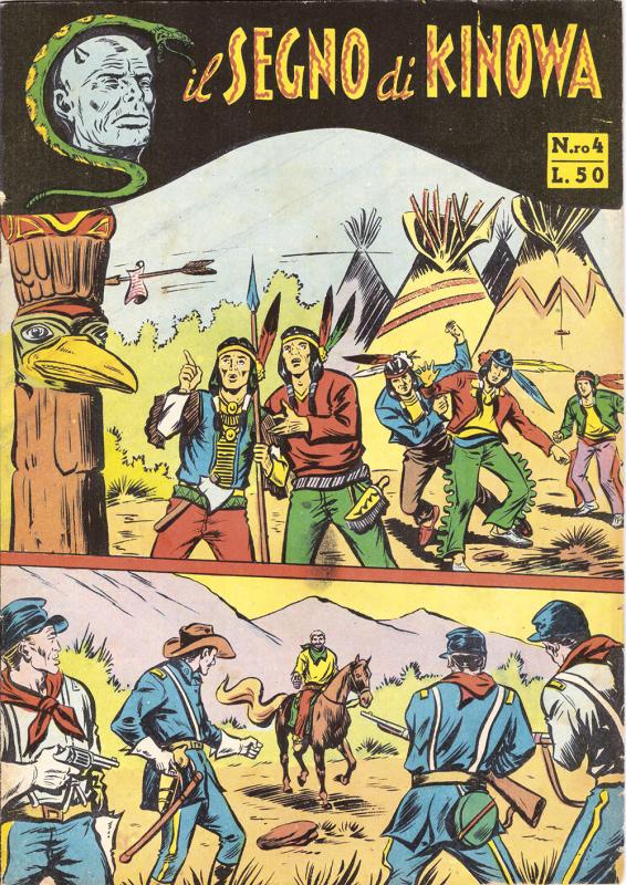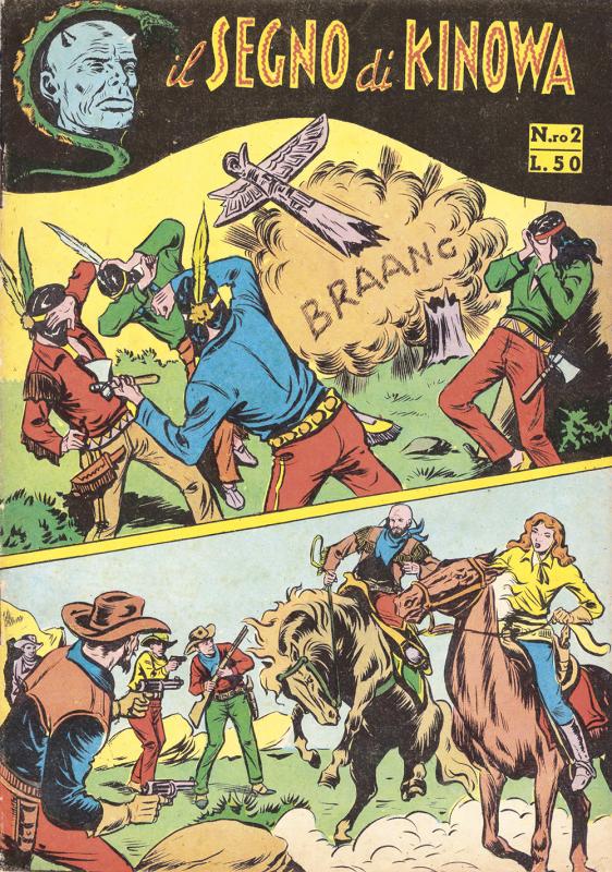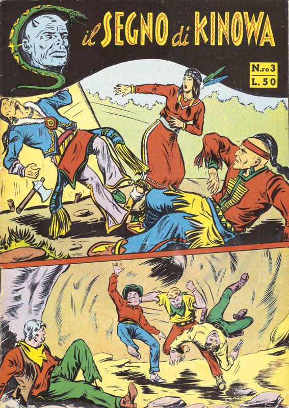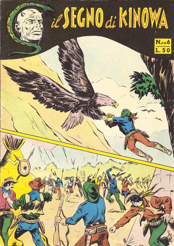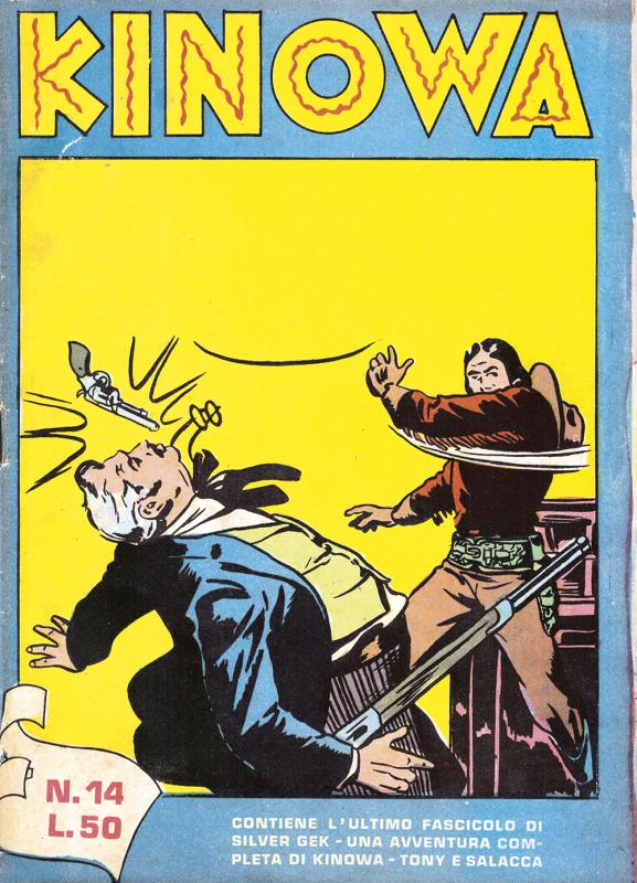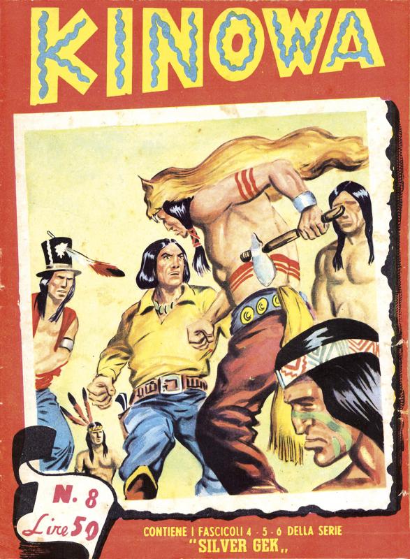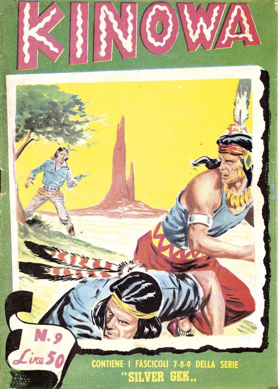 Prima ristampa dell’intera serie di KINOWA ripresentata nel formato albo d’oro. È suddivisa in sei serie (la prima comprende senza alcuno stacco la prima e la seconda originali: KINOWA e SILVER GEK) formanti il ciclo completo delle storie pubblicate: ogni uscita contiene tre episodi della serie originale. Copertine di Franco Donatelli, Sergio Tarquinio, Emilio Uberti, Pietro Gamba. In questa edizione viene inserita l’avventura “Nel paese di là” apparsa per la prima volta nella strenna CALENDARIO WESTERN (Dardo, 1951) per i disegni di Pietro Gamba.
