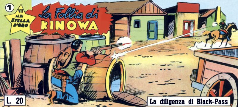 RC1 - Raccolta KINOWA nn. 1/27 - s.d. - 1959 - 252 pgg. + cop. - cm 16,4 x 7,4 dq - Lire 120. Raccoglie le strisce. Si presume che la pubblicazione sia avvenuta alla fine degli anni '50, inizio anni '60. Le copertine sono disegnate da Angiolini e altri.