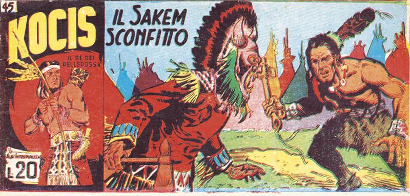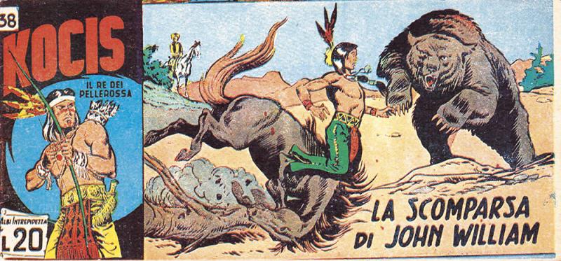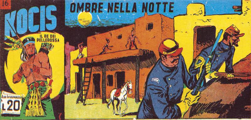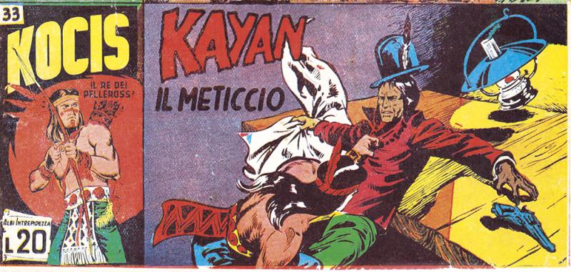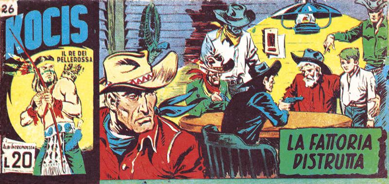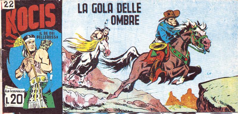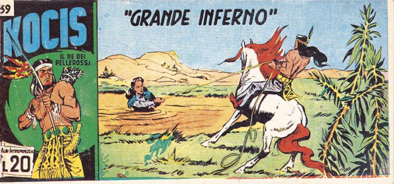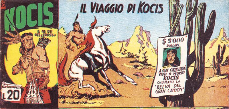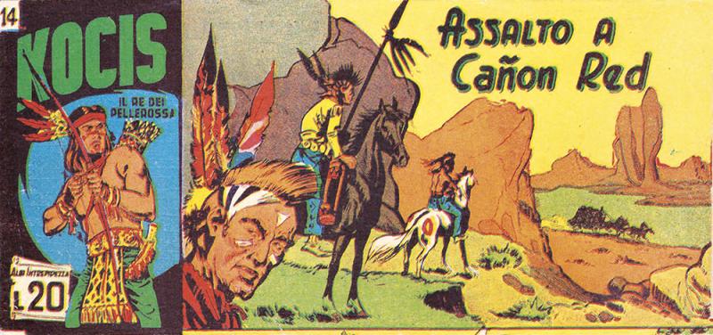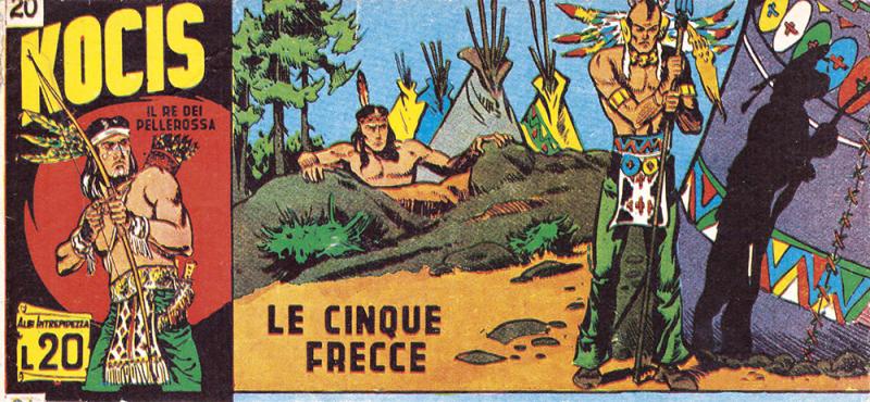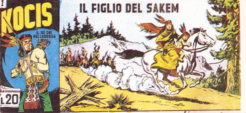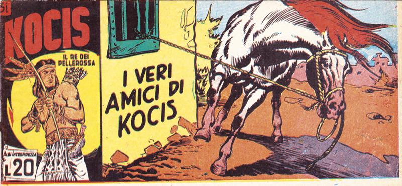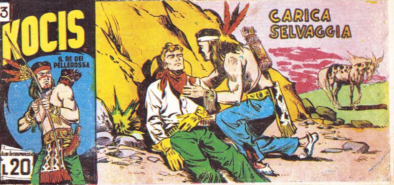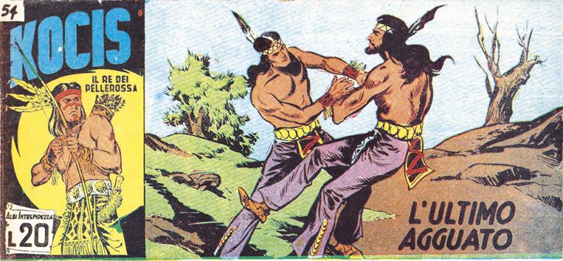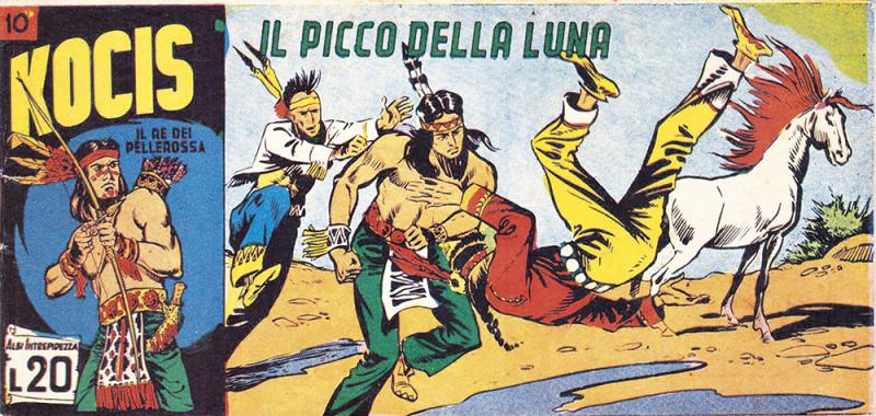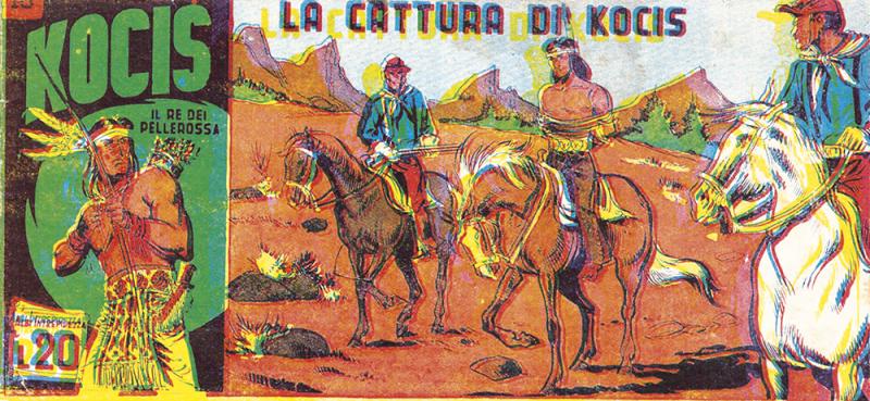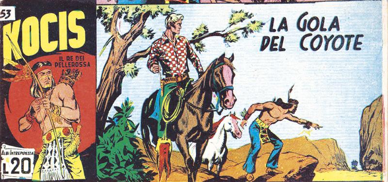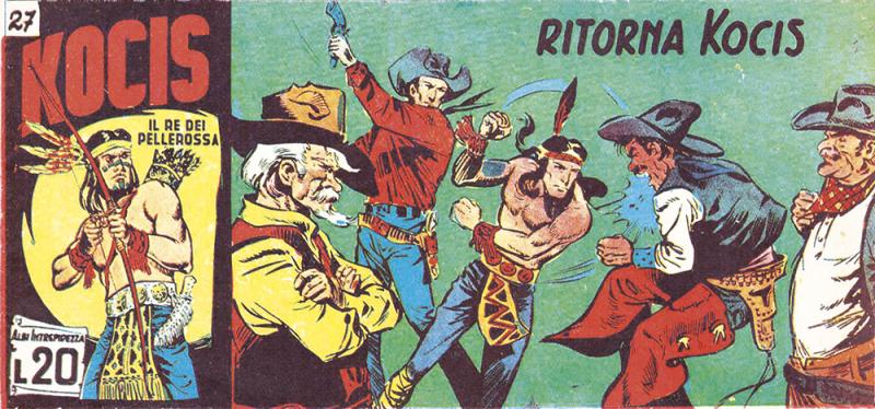 Fumetto western che vede come protagonista KOCIS, il figlio di Grande Aquila, il capo degli Apaches. Testi di Antonio Chiomenti, disegni di Vincenzo Chiomenti. In appendice ai nn. 1/54 vengono pubblicati i racconti “Lotta sul Pacifico” e “Nella valle dei Re”, realizzati entrambi da Vincenzo Chiomenti.