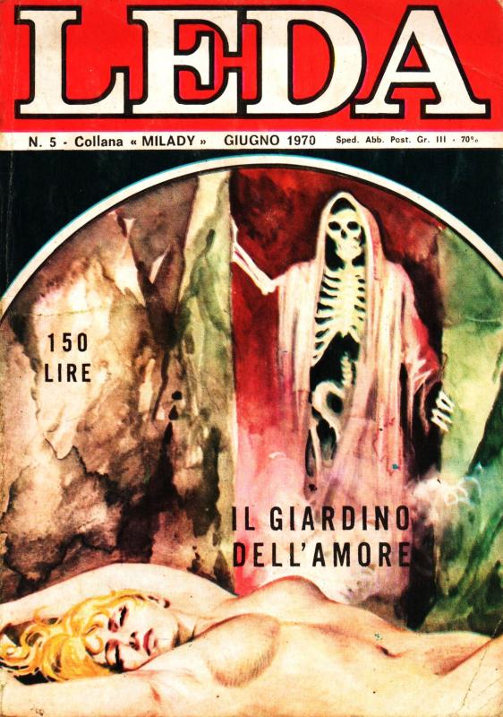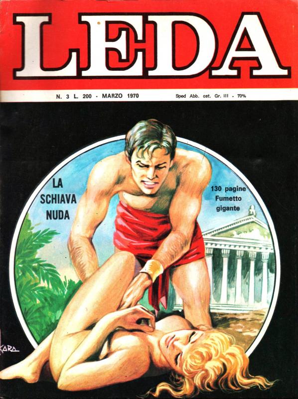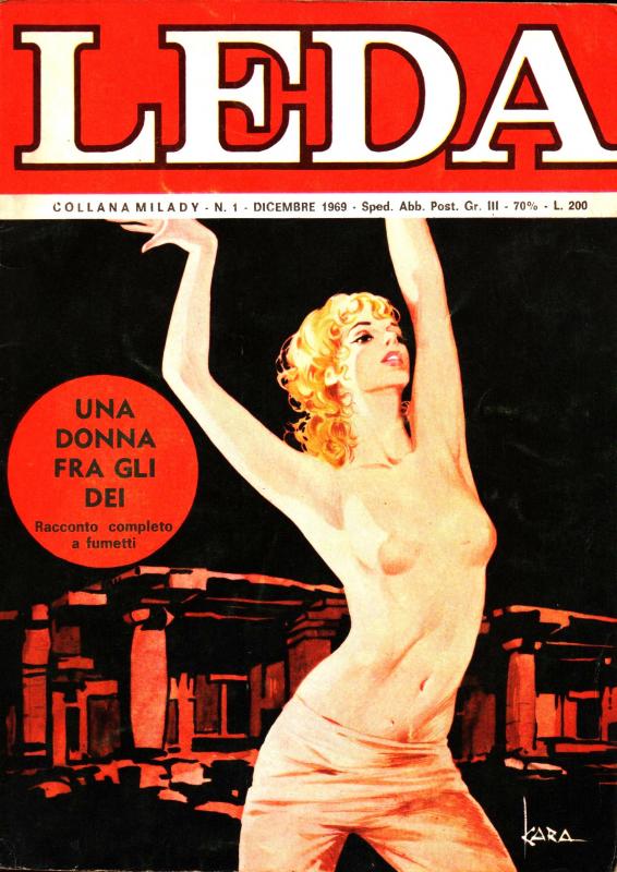 Serie fantastica per adulti che narra le avventure di LEDA, viaggiatrice nel tempo finita all’epoca dell’antica Grecia. Testi di G. Aldi, disegni di Eros Cara (Eros Kara) (nn. 1/2 e 4), autore anche delle copertine, Studio Darling (n. 3) e Giancarlo Tenenti (n. 6). Dal n. 5 (giugno 1970) i volumetti hanno formato e prezzo ridotto.