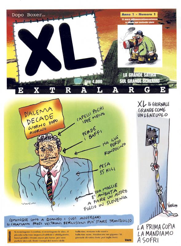 ES2 - XL EXTRALARGE (nn. 1/6 - 15 marzo/21 maggio 1999 - 16 pgg. autocop. - cm 28,2 x 42,5 pc - 4 + 4 - Lire 4.000), Editrice Donna, 1999. Rivista di satira diretta da Vauro Senesi sulla scia di BOXER, con cui condivide gran parte dei collaboratori. Esce inizialmente come allegato a IL MANIFESTO poi diventa testata autonoma.