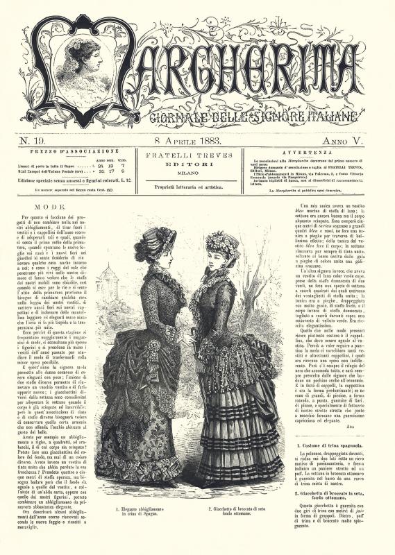 Giornale delle signore italiane pubblicato a Milano da Fratelli Treves Editori presumibilmente dal 1879 al 1883 (8 pgg. autocop. - cm 27,5 x 38,5 pc - Bianco e nero - Cent. 60). Presenta servizi illustrati dedicati prevalentemente alla moda dell’epoca.