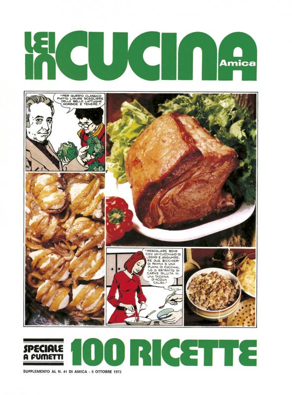 AL3 - LEI IN CUCINA “100 ricette - Speciale a fumetti” suppl. al n. 41 - 9 ottobre 1973 - 76 pgg. autocop. - 4 + 4 cm 23 x 30,5 pm. Disegni di Roberta Crimaldi, Iris De Paoli, Aldo Di Gennaro, Giuliano Giovetti, Alberto Peyré, Ferdinando Tacconi, Mario Uggeri. Fascicolo speciale che esce sulla scia del successo della rubrica “La cucina a fumetti” pubblicata sul settimanale sotto la direzione di Mario Oriani.