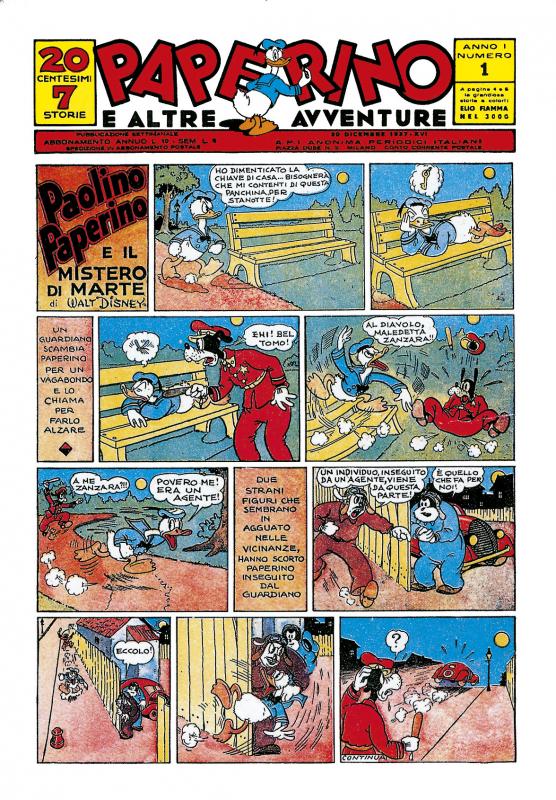 Settimanale che nasce sull’onda del successo di TOPOLINO giornale, ospita oltre a LE AVVENTURE DI PAOLINO PAPERINO (tavole autoconclusive) di Al Taliaferro, episodi di PAPERINO, PIPPO e BIANCANEVE scritti da Federico Pedrocchi per i disegni di Enrico Mauro Pinochi i primi due, e di Nino Pagot la terza. Pubblica anche episodi di BRACCIO DI FERRO (Popeye) (Elzie Crisler Segar), ELIO FIAMMA (Buck Rogers) (Dick Calkins/Rick Yager), ELLA PARELLA (Ella Cinders) (Bill Conselman/Charlie Plumb), MARIO E FURIO (Tim Tyler’s Luck) (Lyman Young/Nat Edson), LA RONDINE DEI MARI (Ming Foo) (Brandon Walsh/Nicholas Afonsky), TARZAN (Burne Hogarth). Tra le serie italiane, IL CORSARO NERO (D. Natoli/Rino Albertarelli, Walter Molino), KIT CARSON (F. Pedrocchi/W. Molino), WILL SPARROW (L. Cordero/Kurt Caesar), ZORRO DELLA METROPOLI (Cesare Zavattini/G. Martina, W. Molino); e storie libere di Franco Chiletto, Pier Lorenzo De Vita, Giovanni Scolari, Edgardo Dell’Acqua, Bernardo Leporini, Cesare Avai (Kurt Caesar), Giuseppe Cappadonia. Direttore artistico dal n. 62 (2 marzo 1939) Federico Pedrocchi.