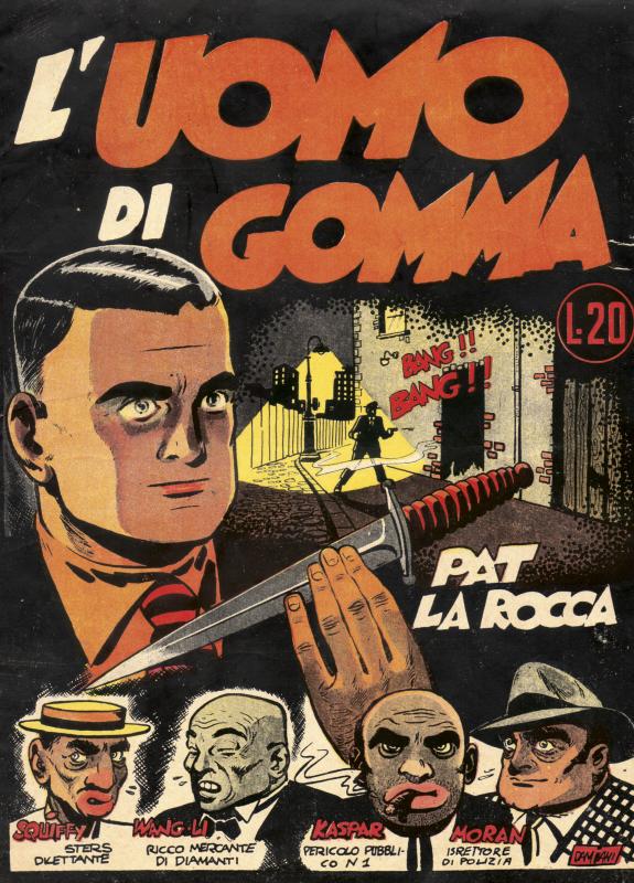 Detective-story ambientata nel mondo dei gangster. Testi e disegni di Damiano Damiani. Albi privi di data, ma il secondo numero è pubblicizzato in uscita il 15 novembre 1946. Annunciato, ma mai pubblicato, il n. 3 "La vendetta dell'Uomo di Gomma!".