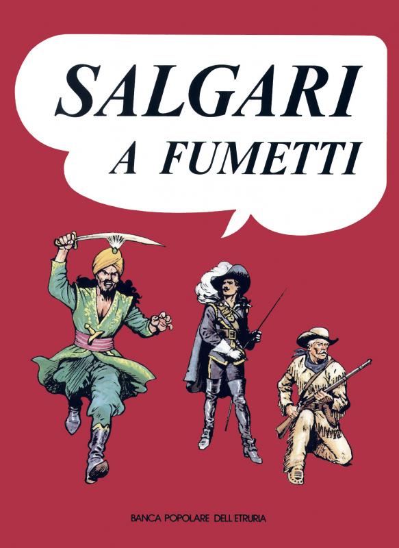 ES1 - “Salgari a Fumetti” - Banca Popolare dell’Etruria - novembre 1975 - 192 pgg. + cop. - cm 24 x 33 cart. - misto - edizione fuori commercio. Pubblica un’antologia di riduzioni a fumetti. “Il Corsaro Nero”, di Franco Chiletto, apparso la prima volta su SALGARI, Settimanale di Grandi Avventure (La Nuova Biblioteca, 1946). “I misteri della Jungla Nera”, di Guido Moroni Celsi, apparso la prima volta su TOPOLINO (Mondadori 1936). “Sulle frontiere del Far West”, di Rino Albertarelli con i testi di Guido Mellini, apparso la prima volta sull’AUDACE ( S.A.E.V. > A.P.I., 1939)