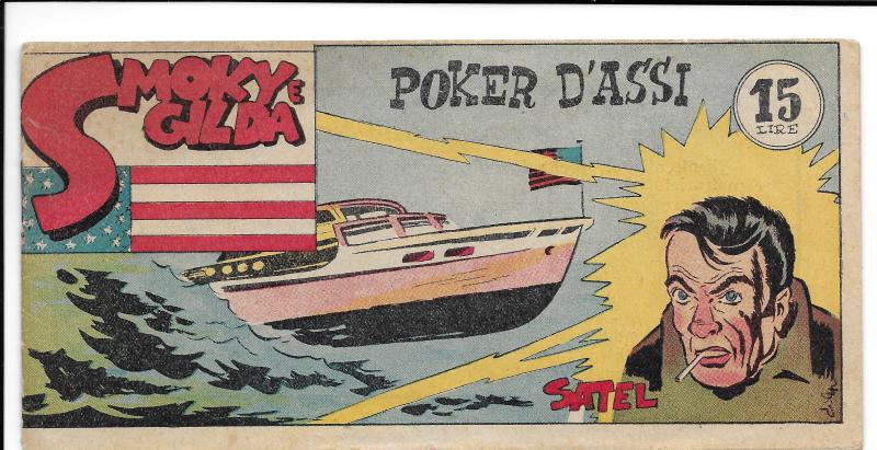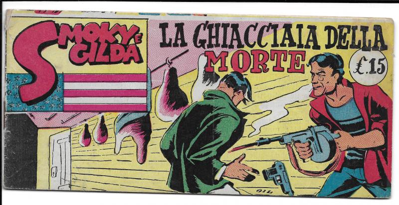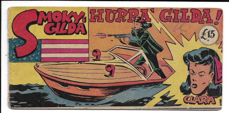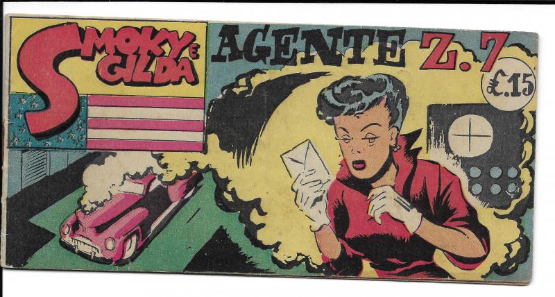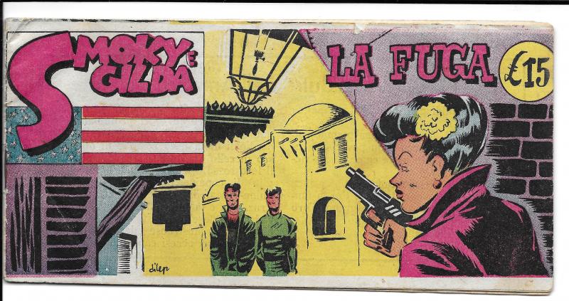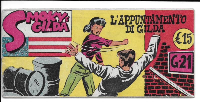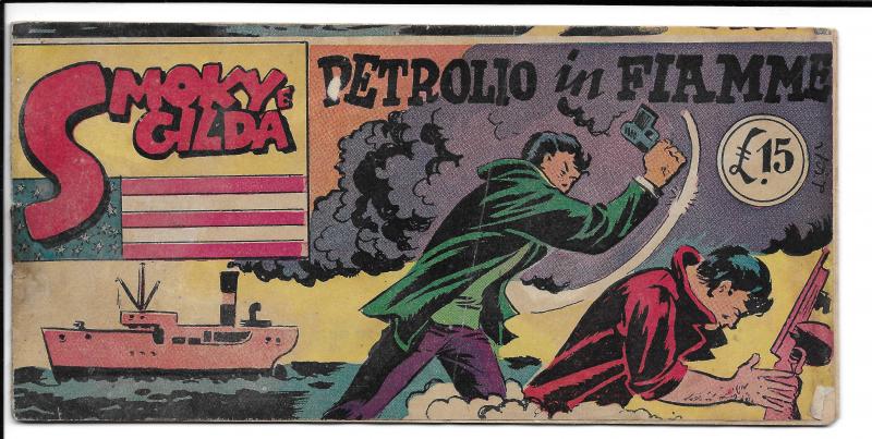 Serie di albi a striscia con protagonisti l’intraprendente SMOKY (sempre con sigaretta accesa, da cui il nomignolo) e la conturbante GILDA. Disegni di Lilep. Essendo stata invertita la gerenza dei nn. 1 e 3 - le strisce si stampano in stecca, tre alla volta - il fascicolo iniziale “La nave fantasma” esce come n. 3 e con data 13 maggio 1949, anziché l’effettiva 30 aprile 1949 che sui prova sul n. 3.